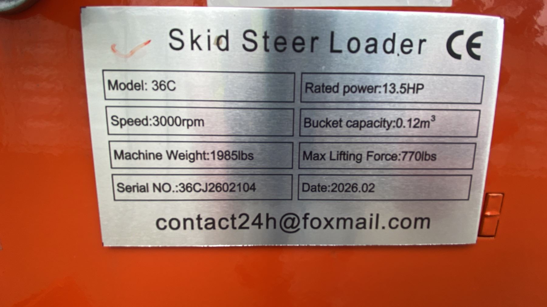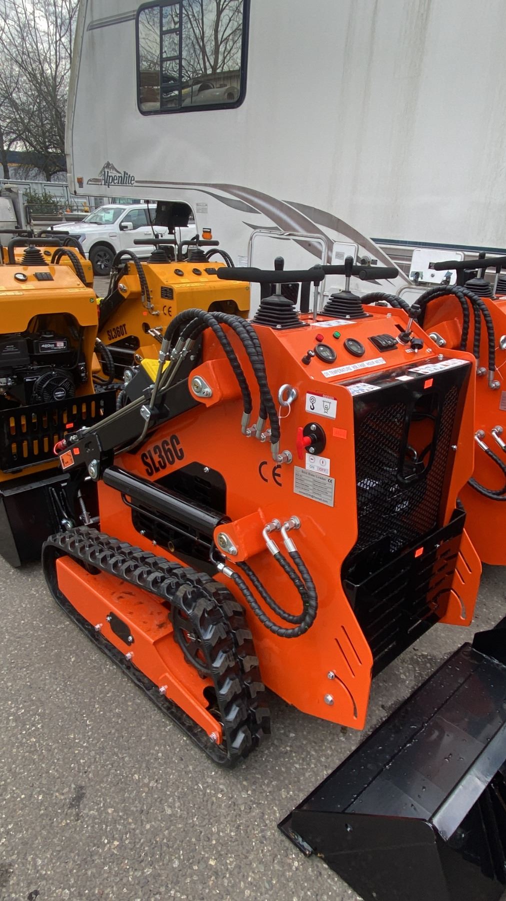 SDLOOL SL36C ORANGE 420CC GAS POWERED RUBBER TRACK STAND ON MINI SKID STEER LOADER WITH 42"W BUCKET*MEETS CANADIAN EMISSIONS CONTROL REGULATIONS*