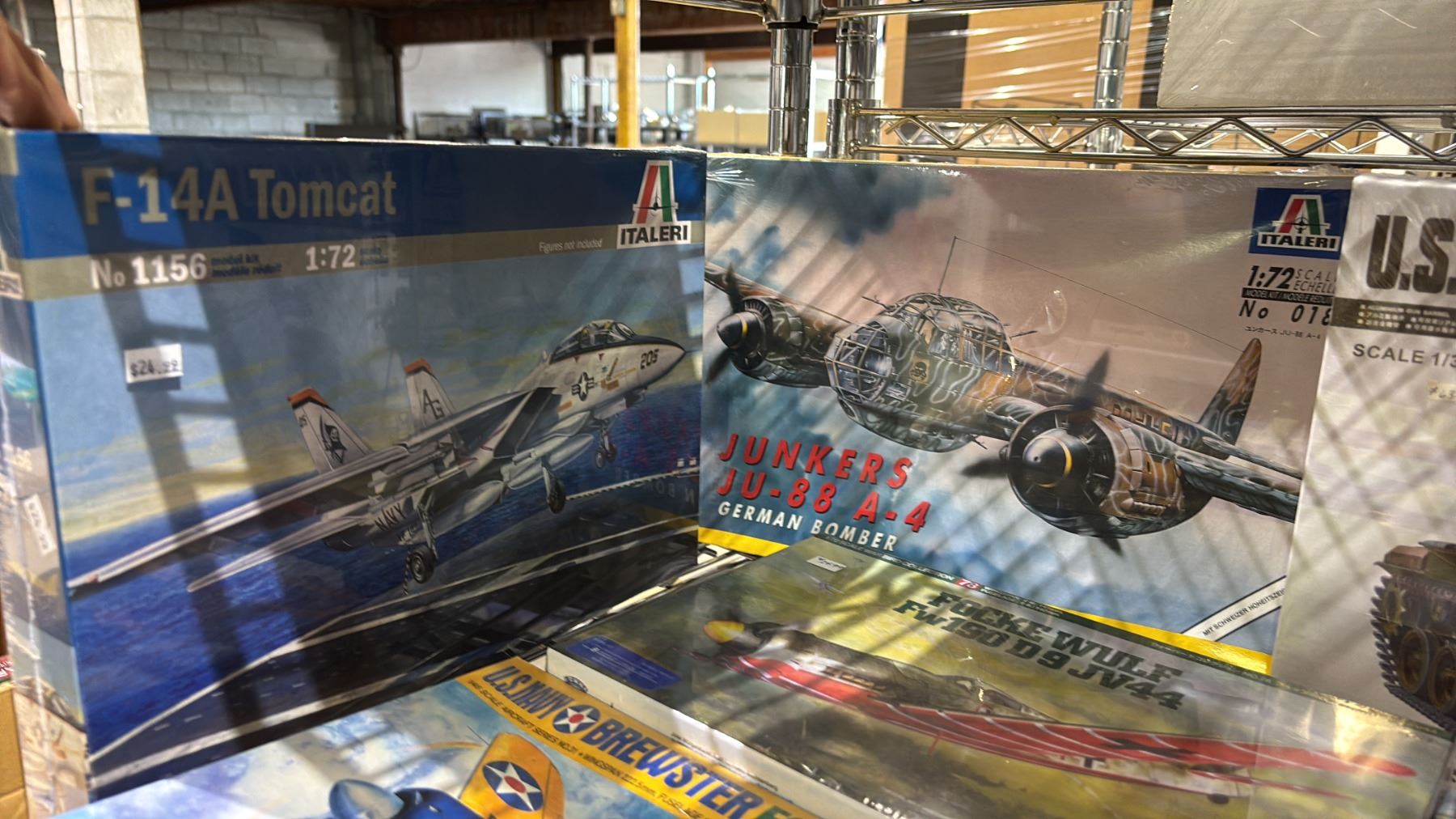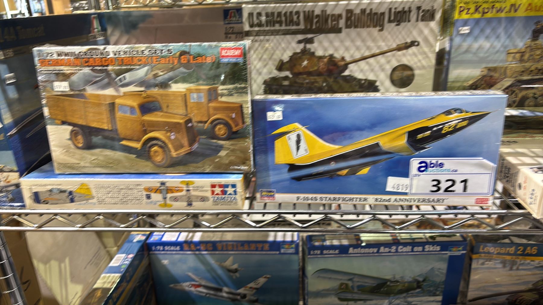 *SEALED BOXES* SHELF OF ASSORTED AIR & GROUND VEHICLE MODEL KITS: HASEGAWA, ITALERI, TAMIYA & MORE