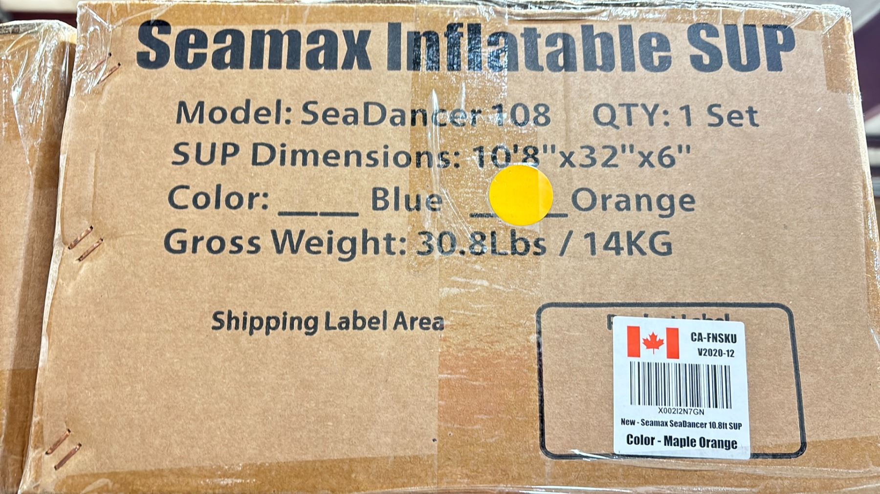 SEAMAX SEADANCER 108 ORANGE INFLATABLE STAND UP PADDLE BOARD WITH BACKPACK, PUMP, PATCH KIT, LEASH & PADDLE * IN BOX *