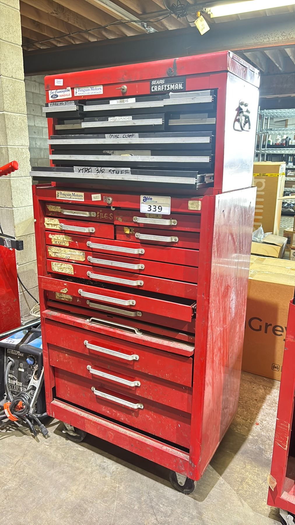 SEARS CRAFTSMAN MOBILE 2 PC LOCKING TOOL CHEST WITH KEYS & CONTENTS