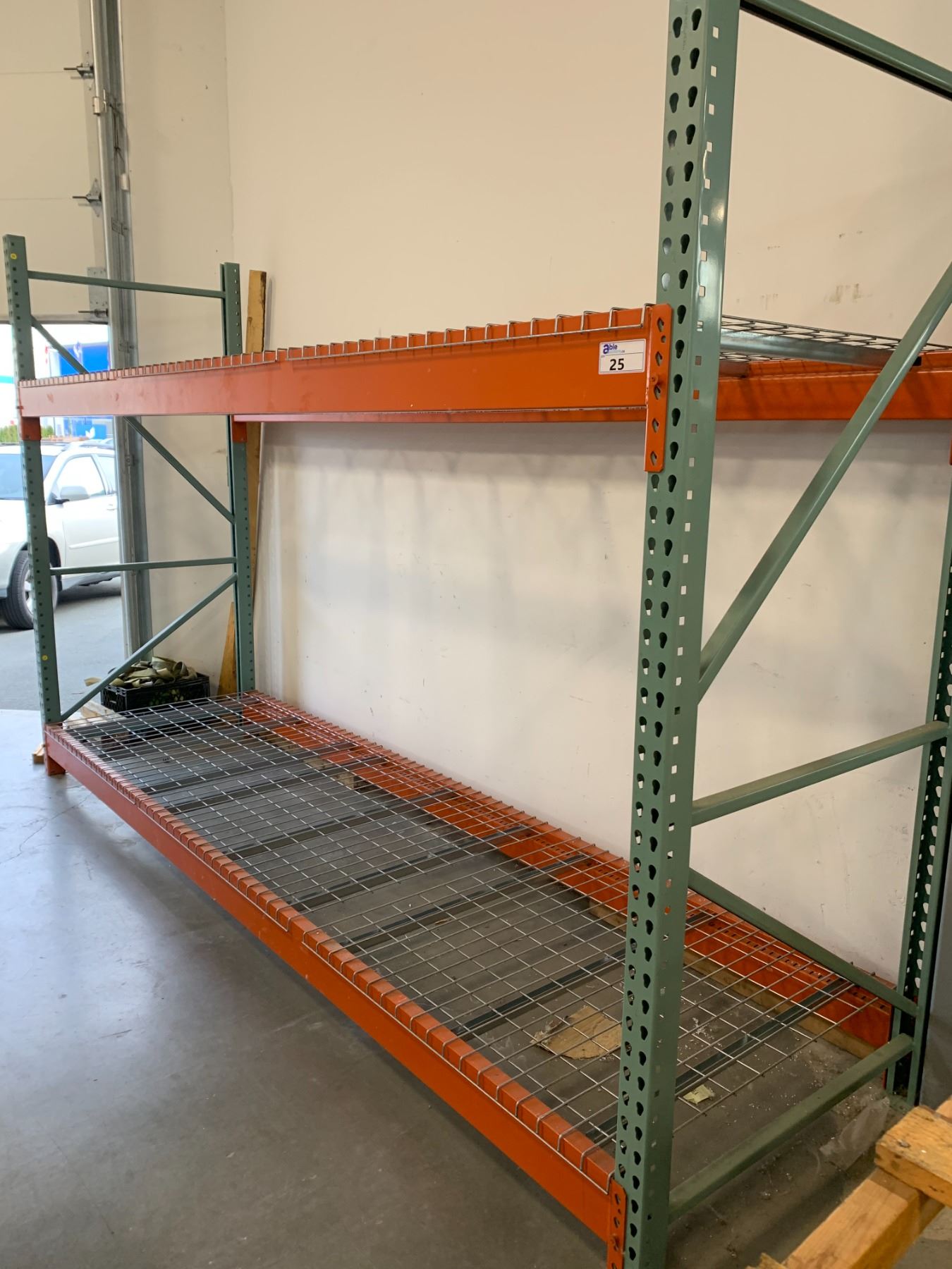 SECTION OF ORANGE & GREY PALLET RACKING W/MESH DECK - APPROX, 12FT ACROSS X 3 1/2FT WIDE X 8FT HIGH