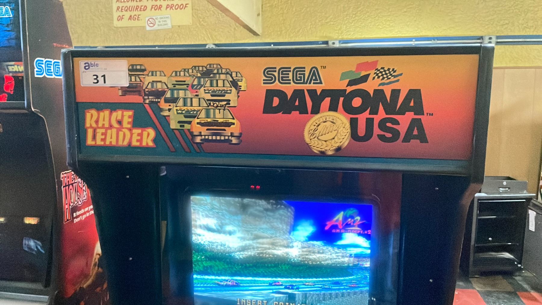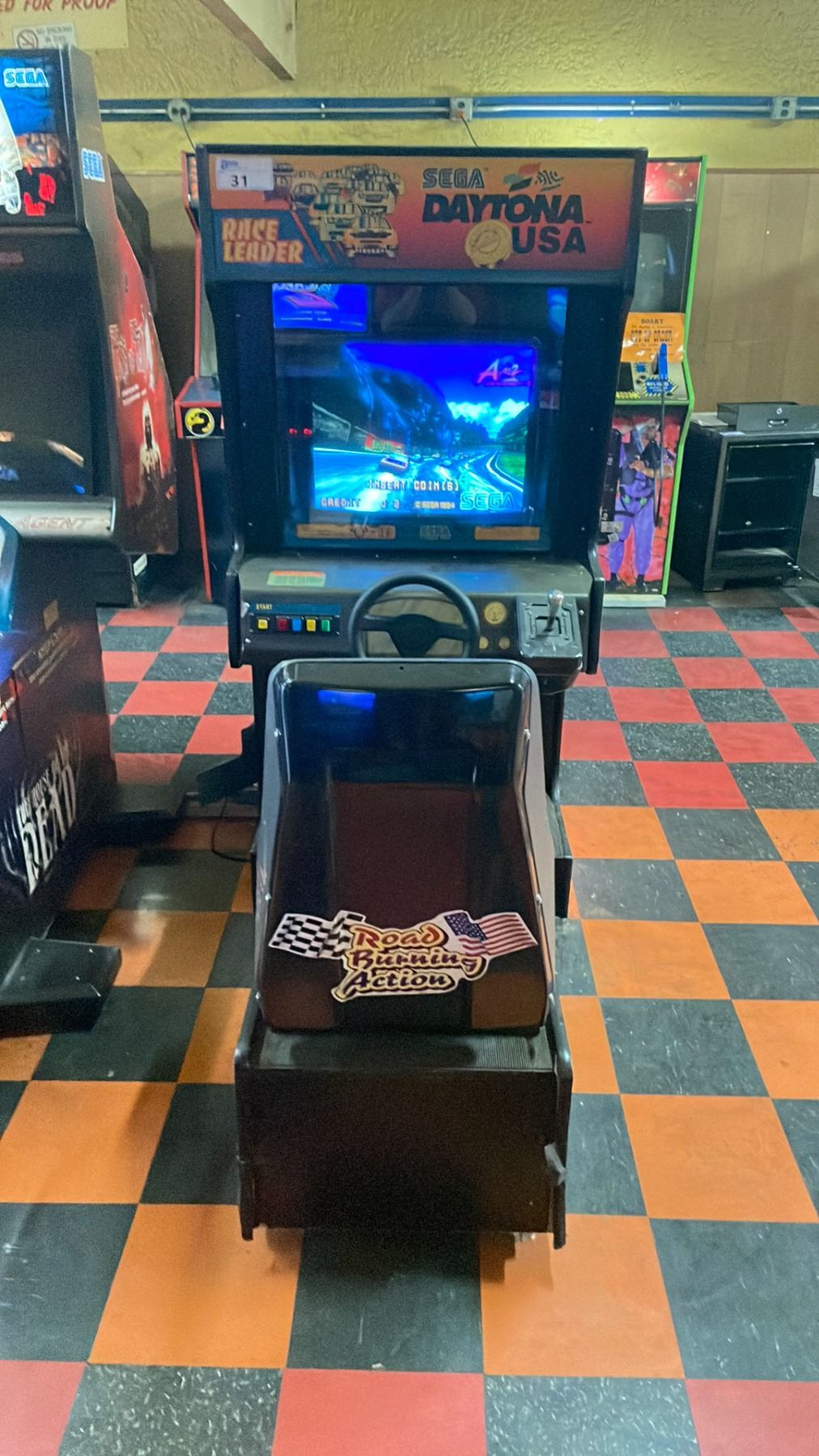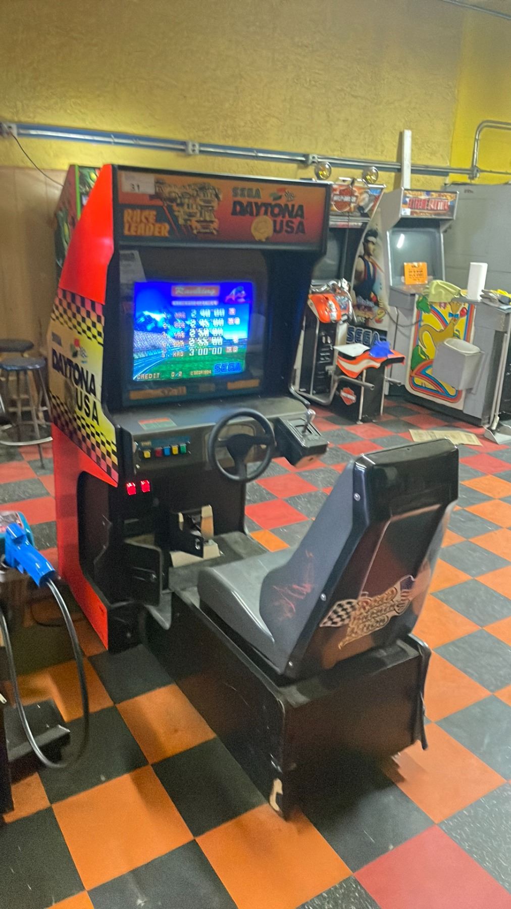 SEGA DAYTONA USA SINGLE PERSON LINKABLE SEATED DRIVING COIN OPERATED ARCADE GAME IN STOCK CABINET