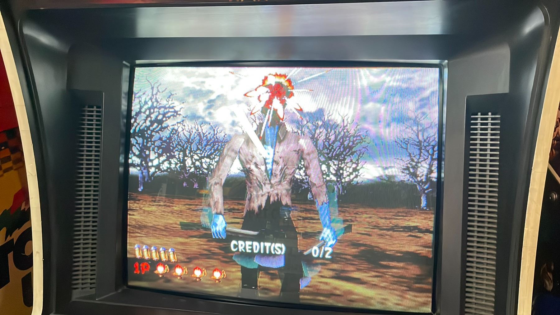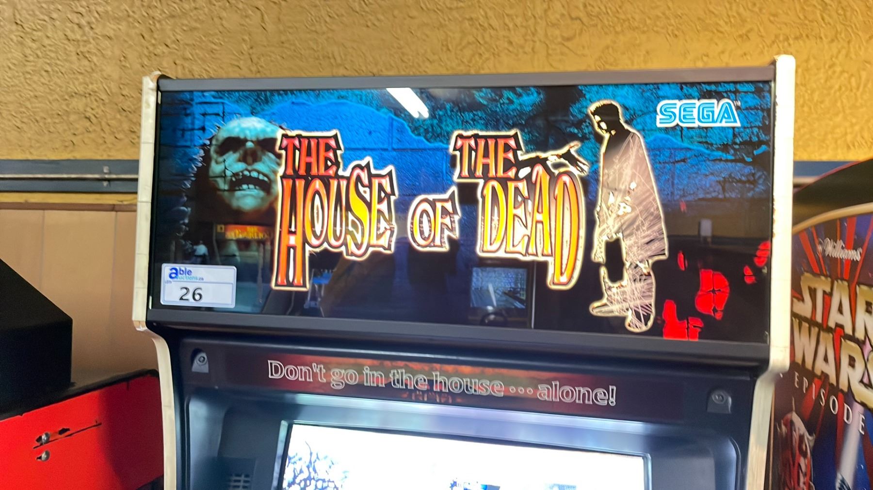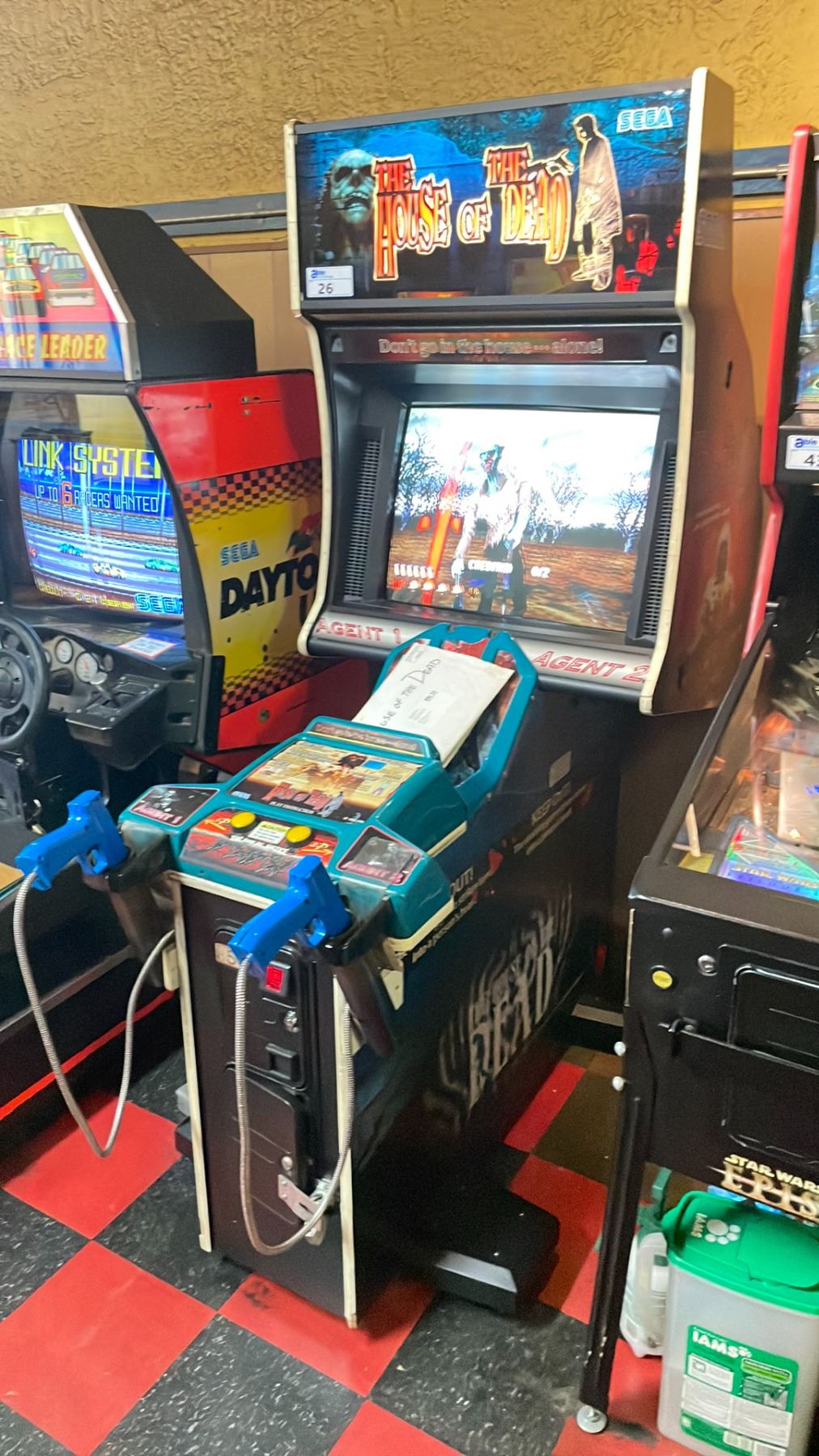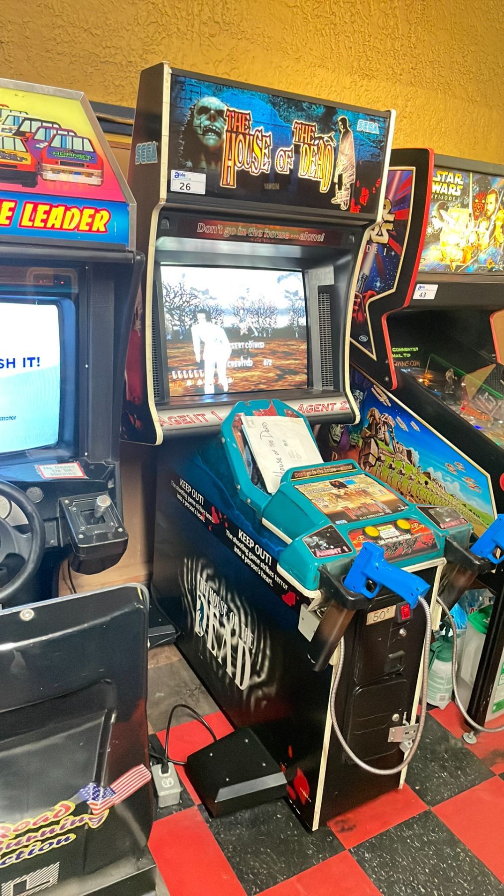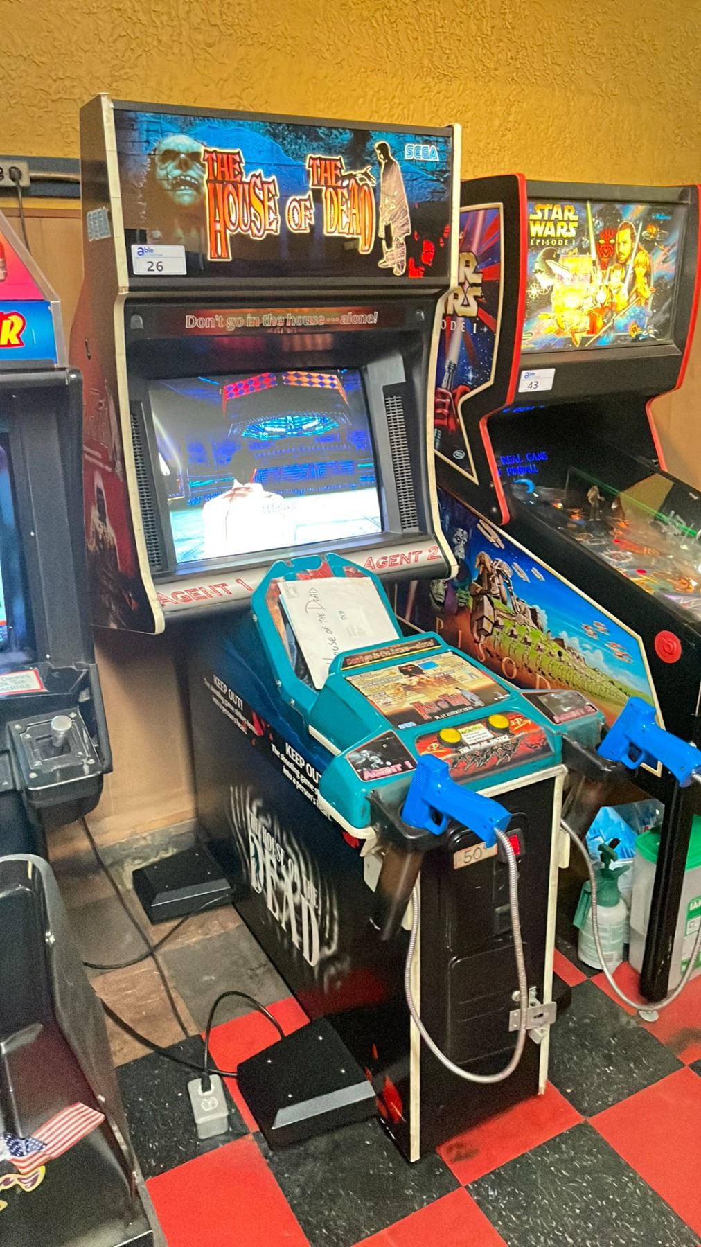 SEGA THE HOUSE OF THE DEAD 2 PERSON COIN OPERATED UPRIGHT SHOOTER ARCADE GAME IN STOCK CABINET WITH MANUALS