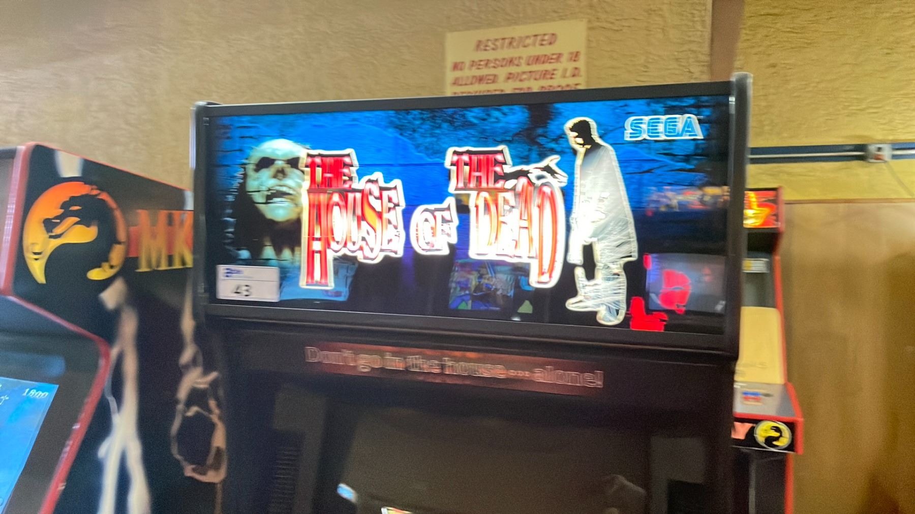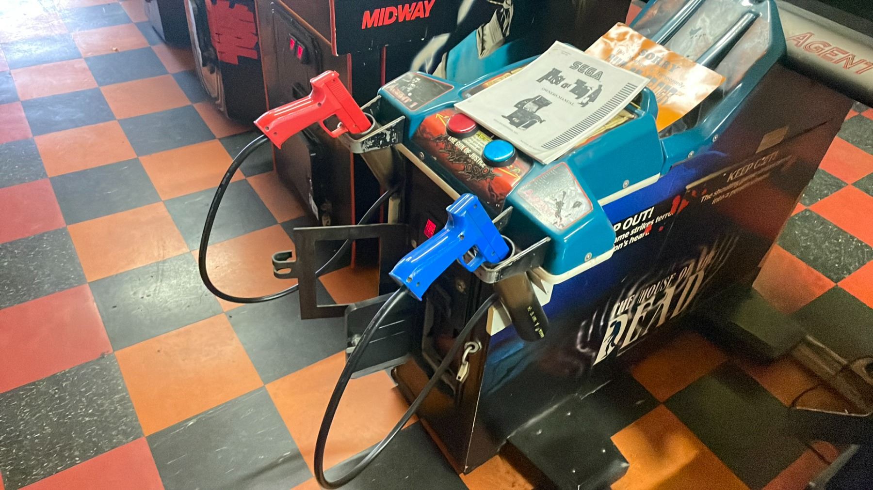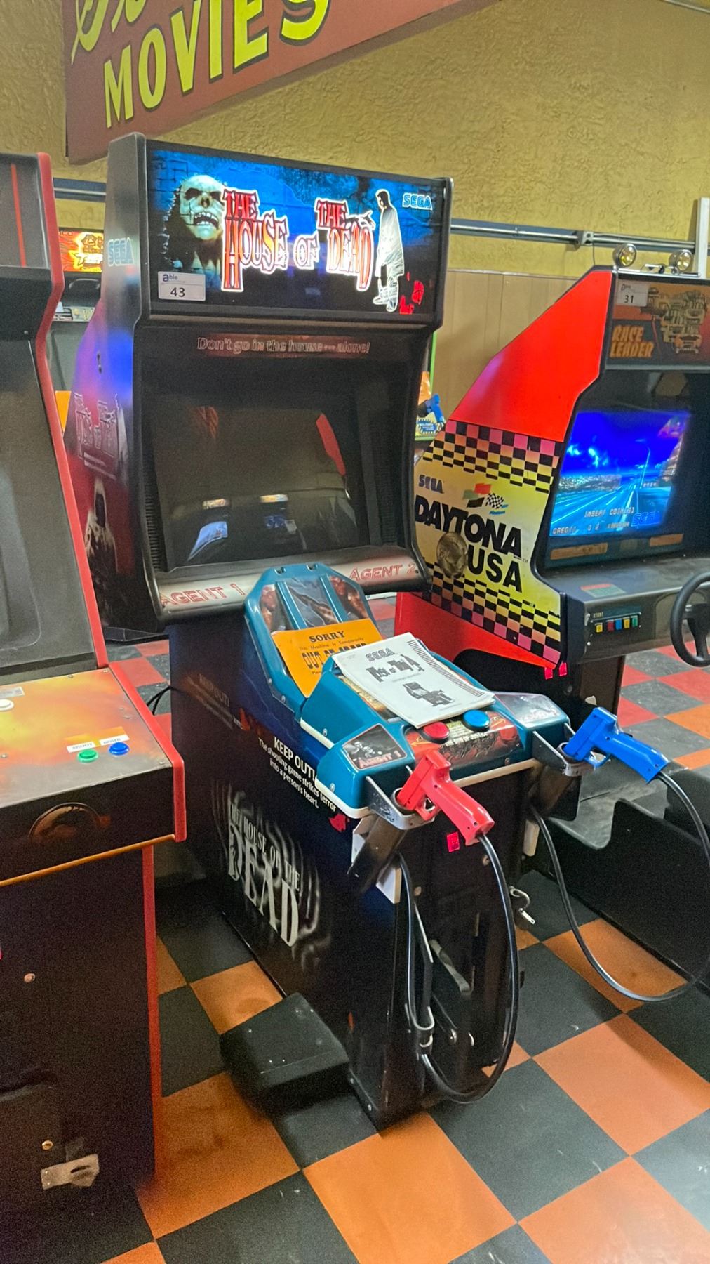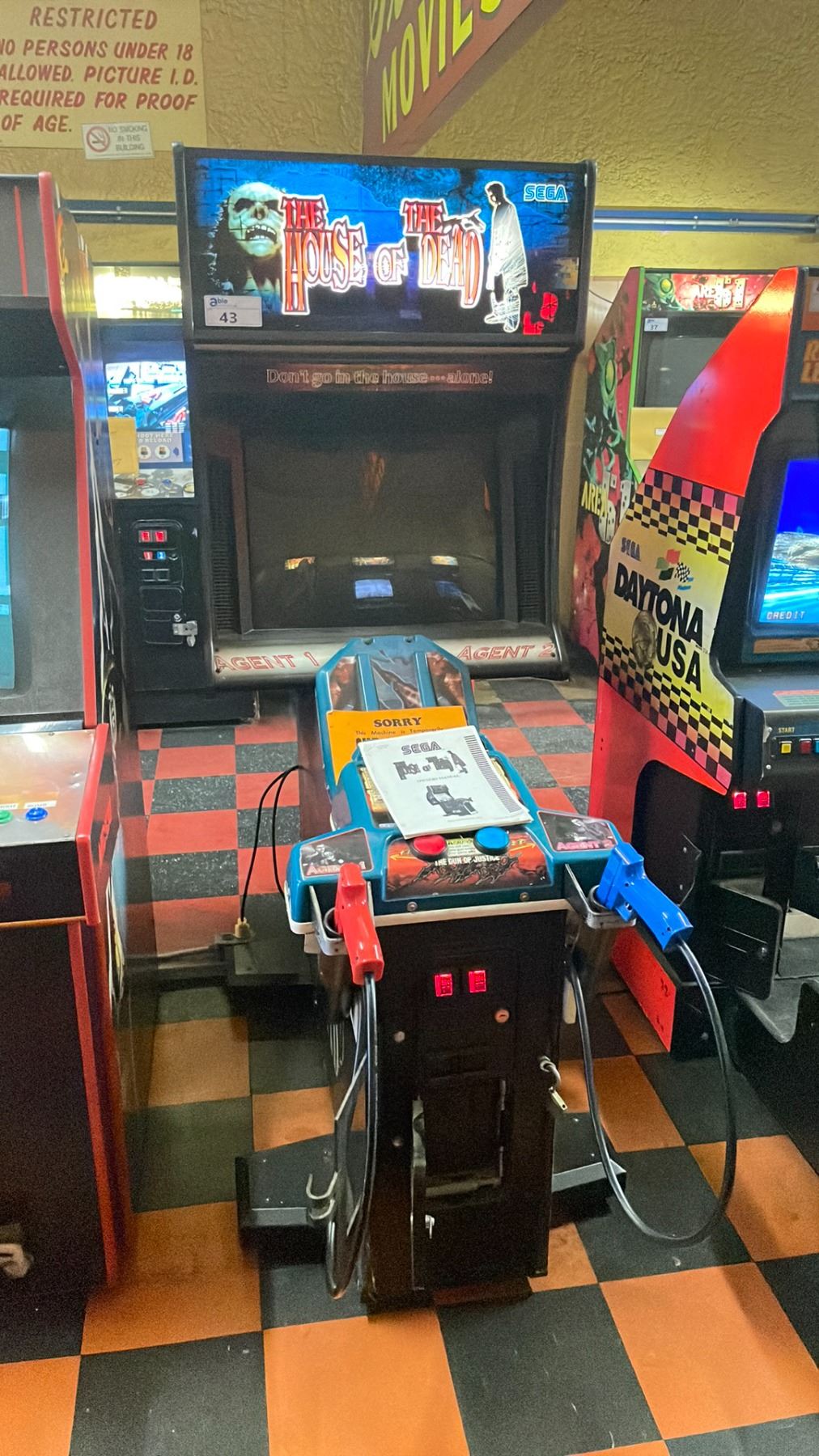 SEGA THE HOUSE OF THE DEAD 2 PERSON COIN OPERATED UPRIGHT SHOOTER ARCADE GAME IN STOCK CABINET WITH MANUALS *OUT OF ORDER, NEEDS REPAIRS*