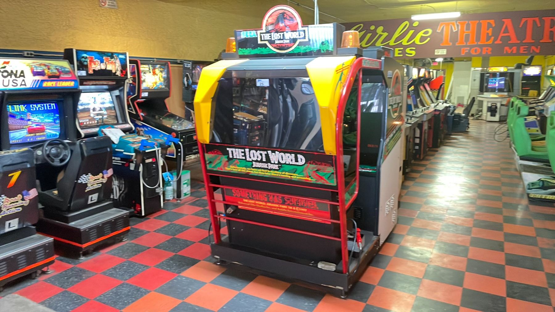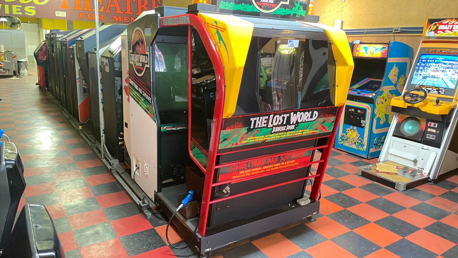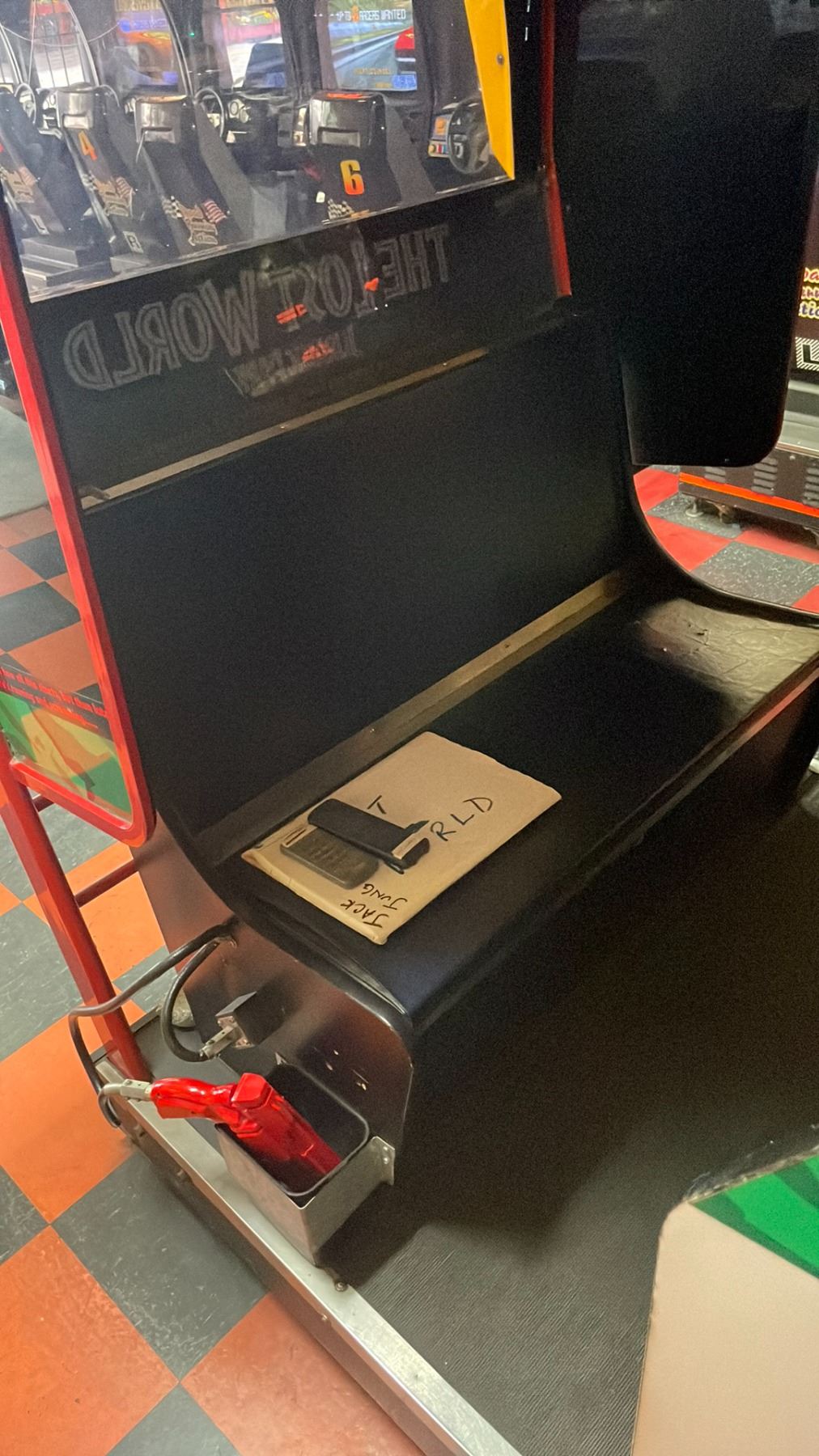 SEGA THE LOST WORLD JURASSIC PARK 2 PERSON COIN OPERATED SEATED SHOOTER ARCADE GAME IN STOCK CABINET WITH MANUALS