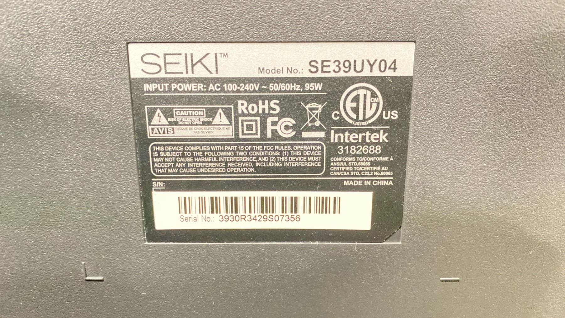 SEIKI 39" LED TV WITH REMOTE MODEL NUMBER SE39UY04