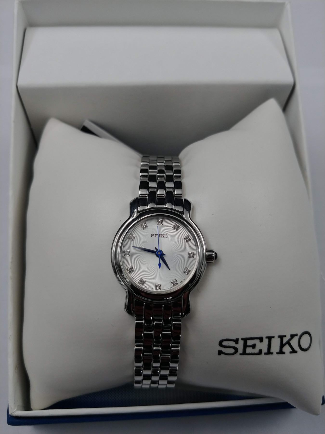 SEIKO STAINLESS STEEL WATCH MADE WITH SWAROVSKI CRYSTALS