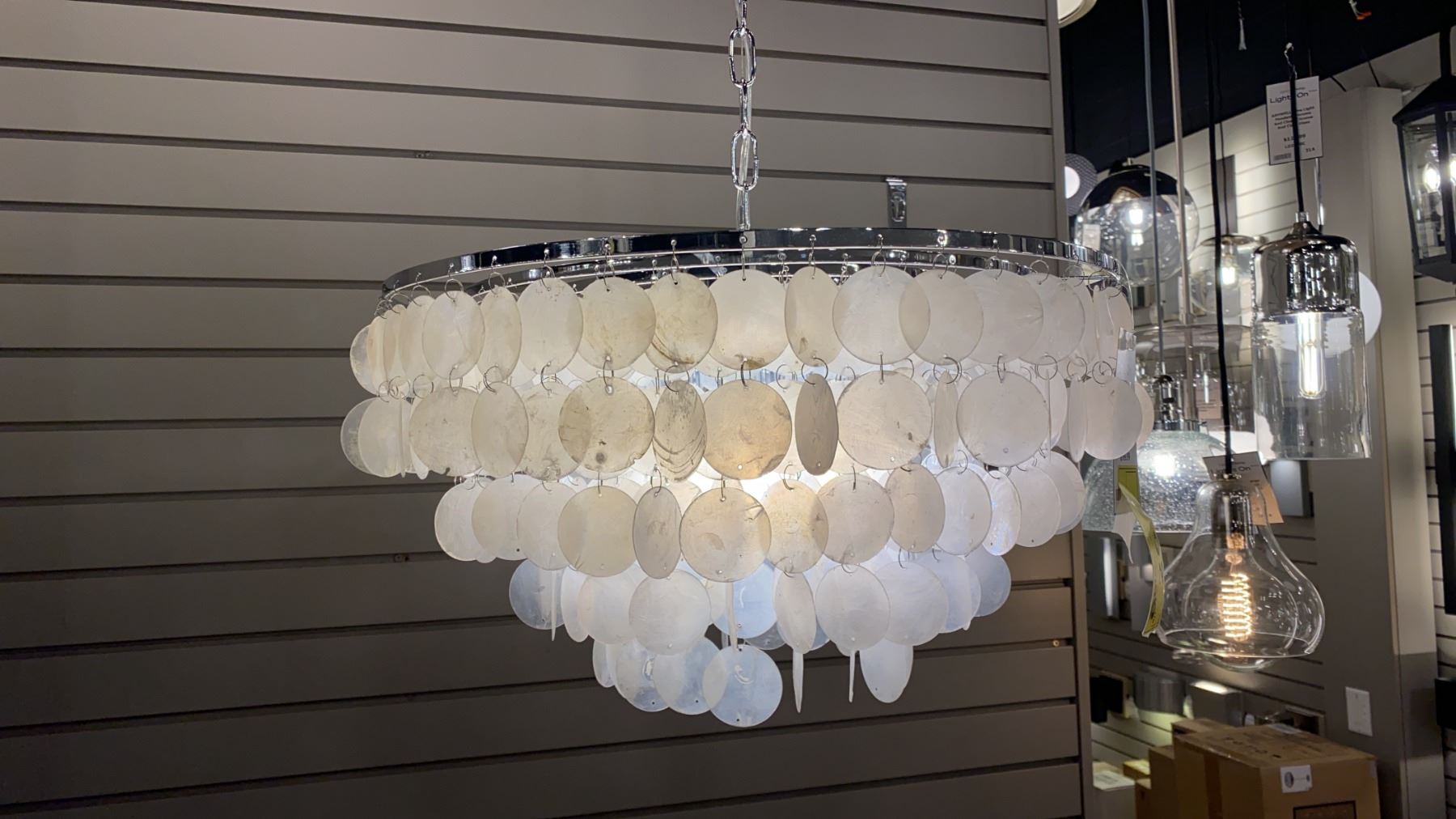 SELENE 4 LIGHT PENDANT CHROME AND WHITE IN BOX 20"