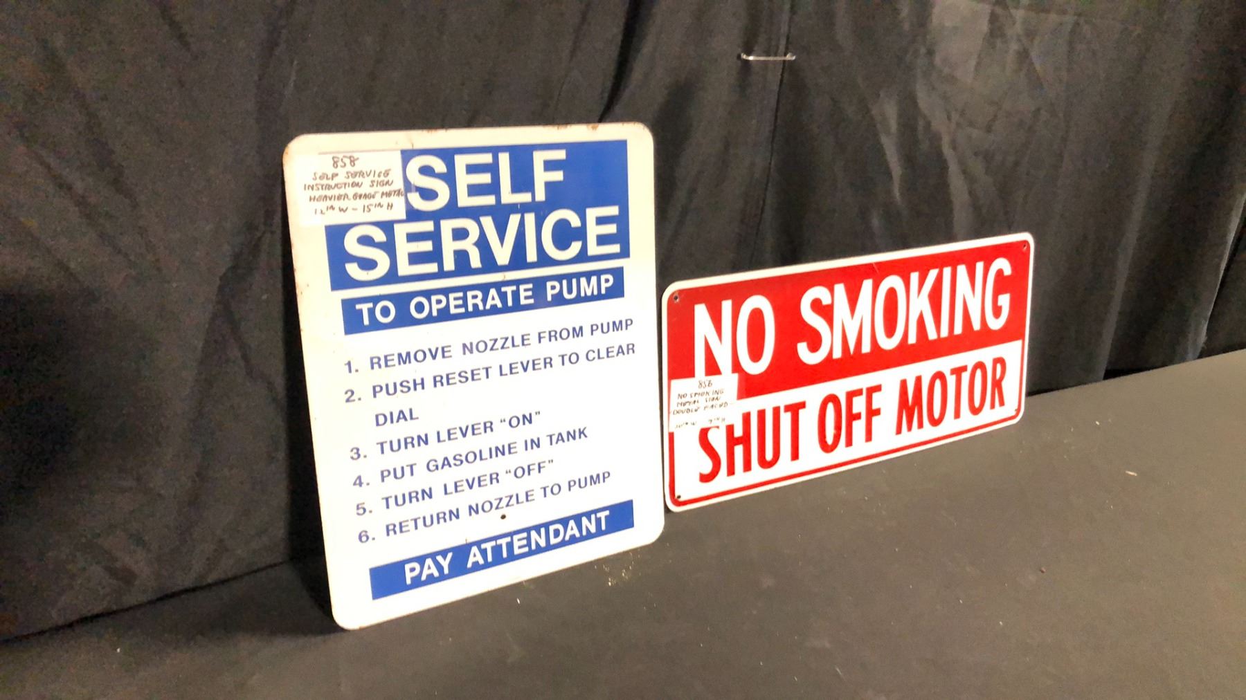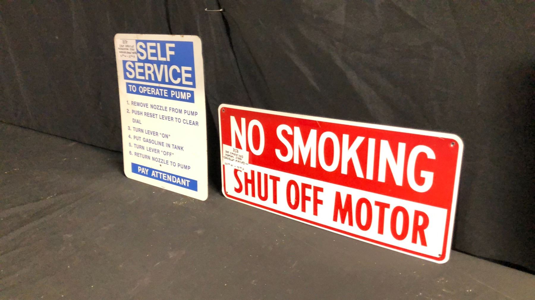 SELF-SERVICE 12" X 15" PUMP SIGN AND NO SMOKING DOUBLE FACED 20" X 9" SIGN