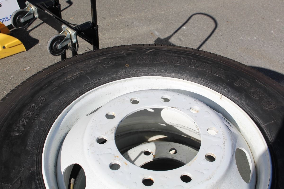 SEMI TIRE ON RIM, HANKOOK, RADIAL F80, REGROOVABLE, HW-J, 11R22.5, TREAD 4 PLY, SIDEWALL 1 PLY, 14