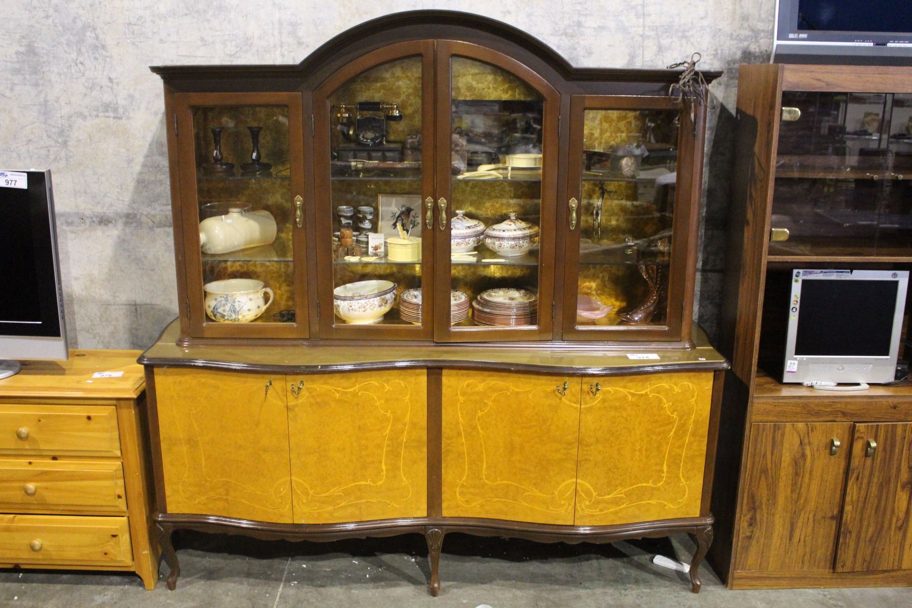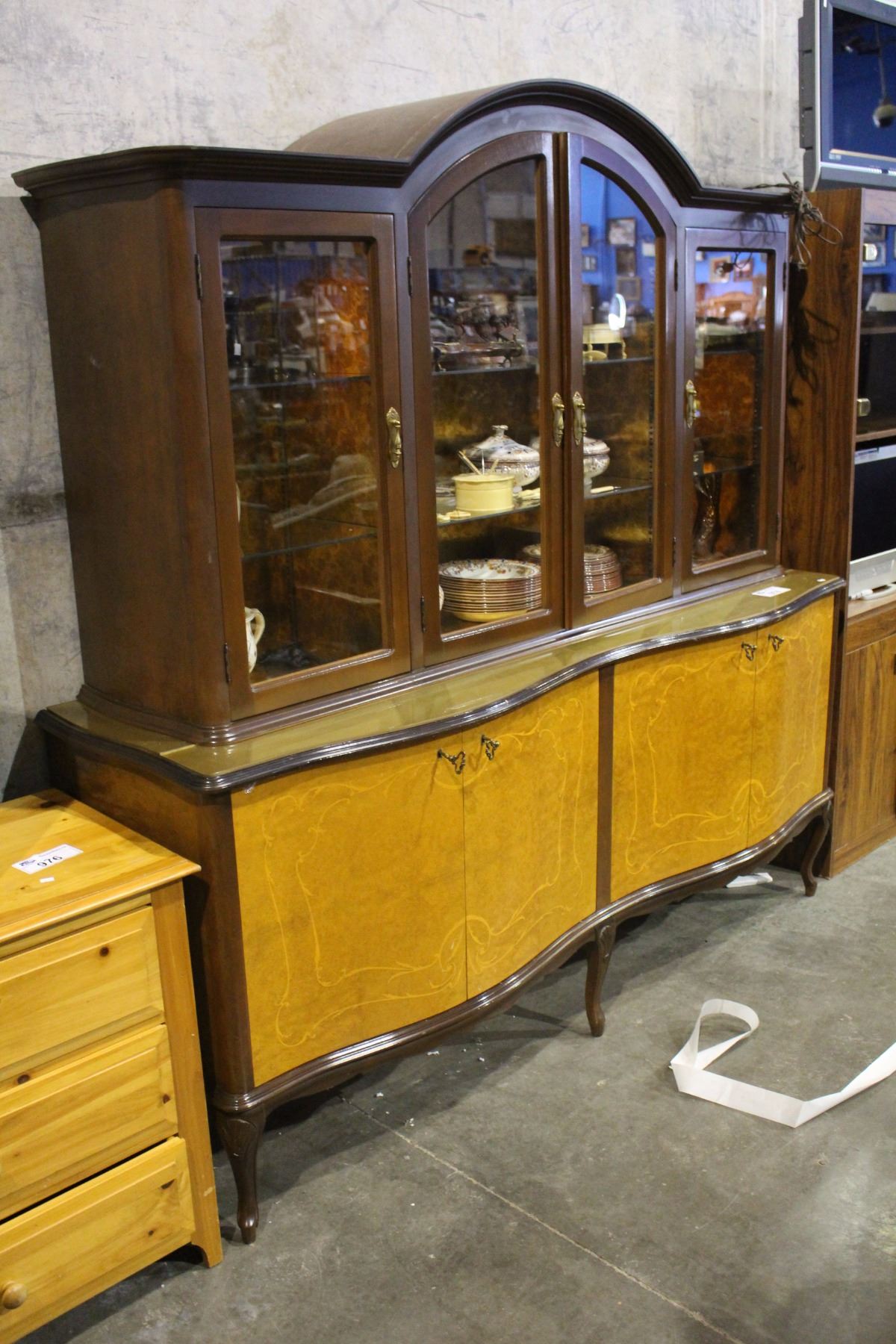 SERPINTINE FRONT SIDEBOARD WITH 4 DOOR GLASS CHINA CABINET TOP