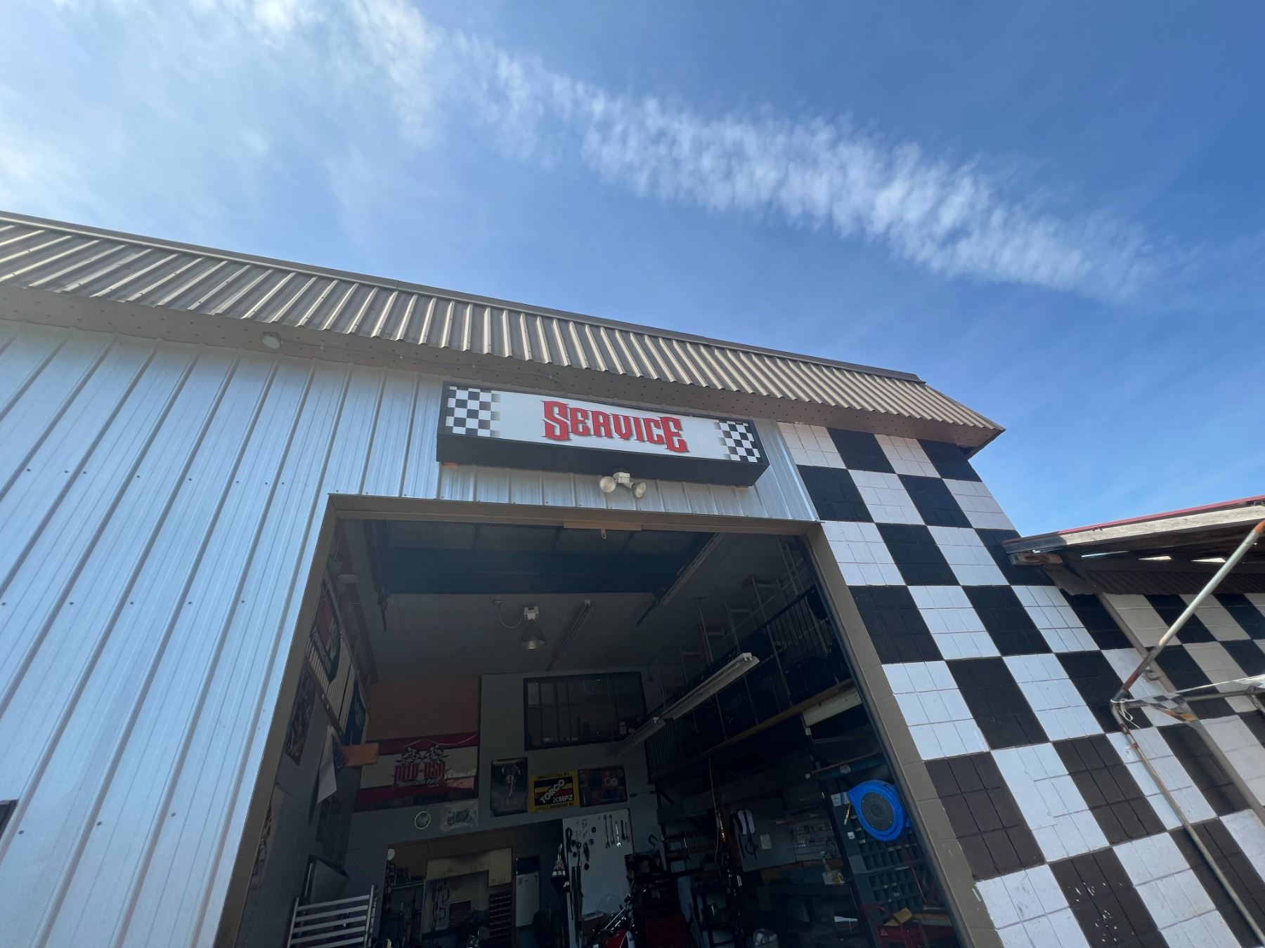 SERVICE ILLUMINATED BUILDING SIGN APPROX 8' X 20" - PLYWOOD BOX