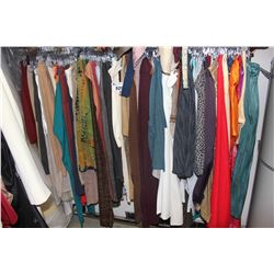 LARGE LOT OF WARDROBE CLOTHING, RACK NOT INCLUDED