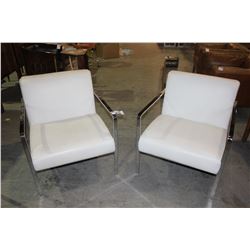 PAIR OF WHITE LEATHER MODERN CHAIRS