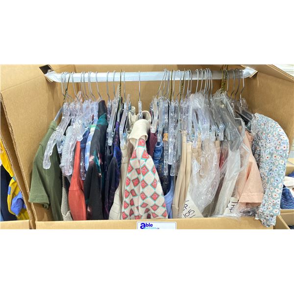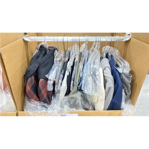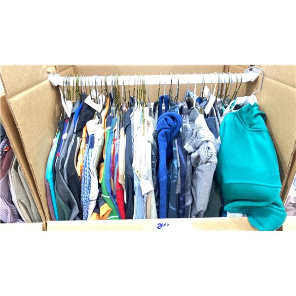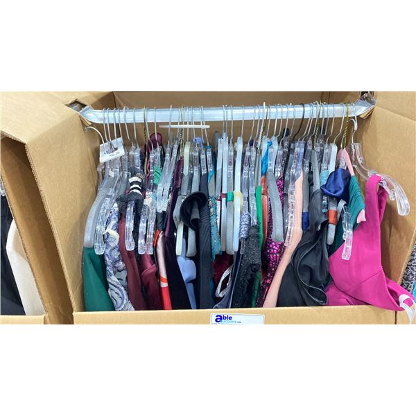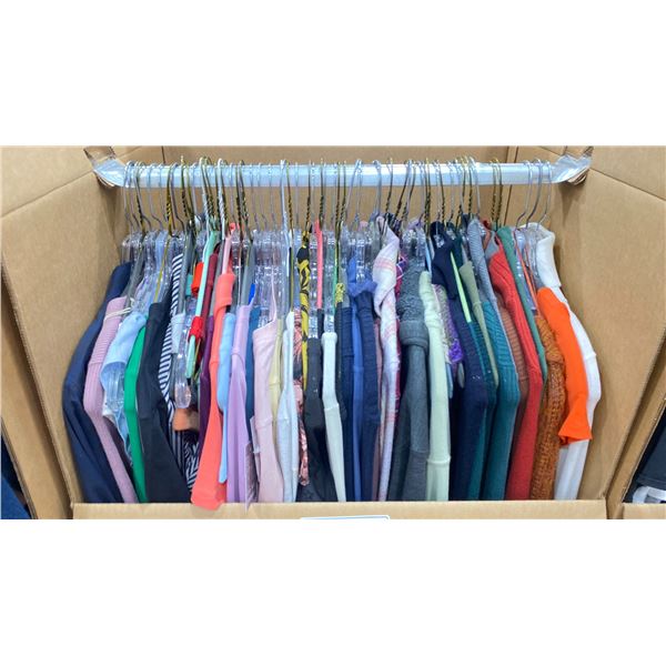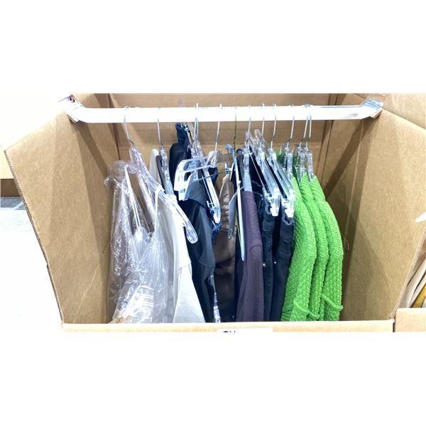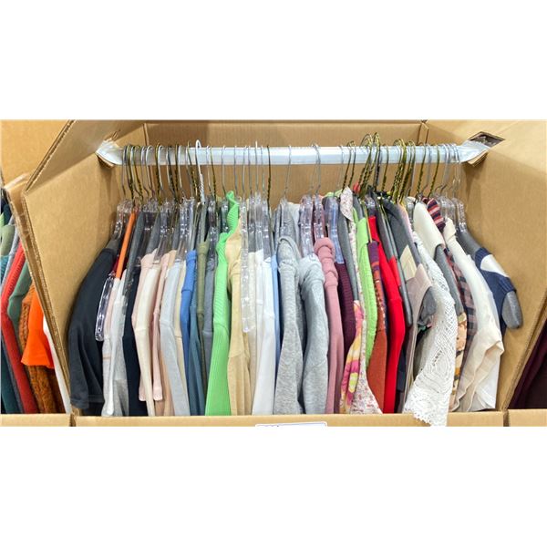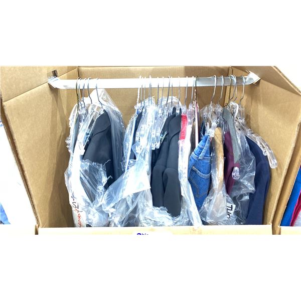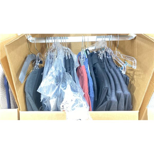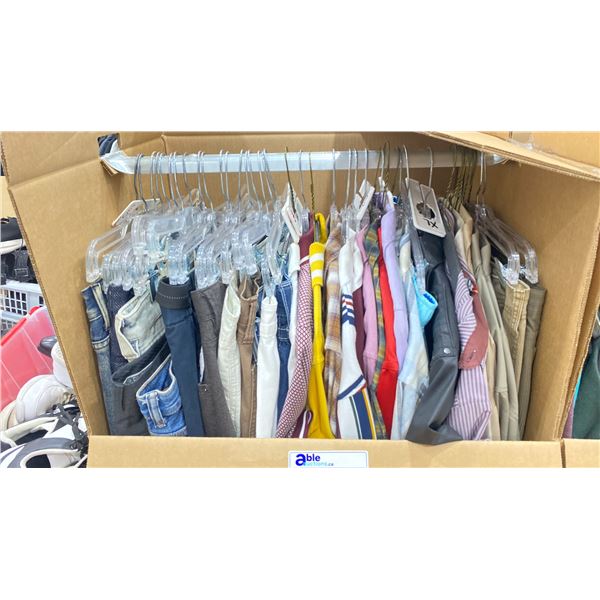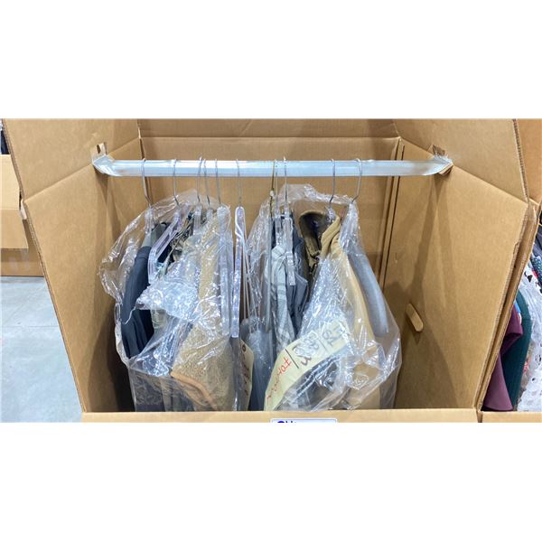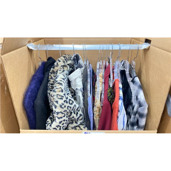 WARDROBE BOX OF ASSORTED CLOTHING (BOX AND ALL CONTENTS MUST BE TAKEN)