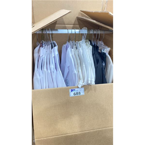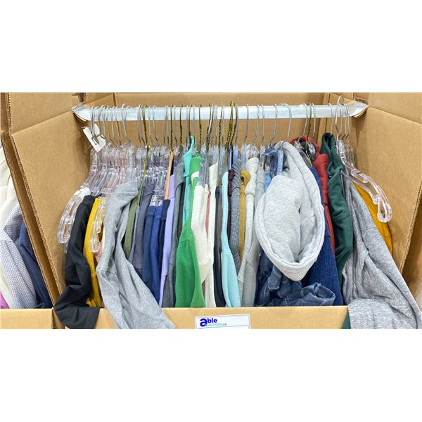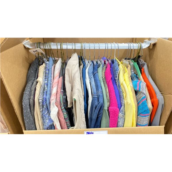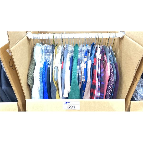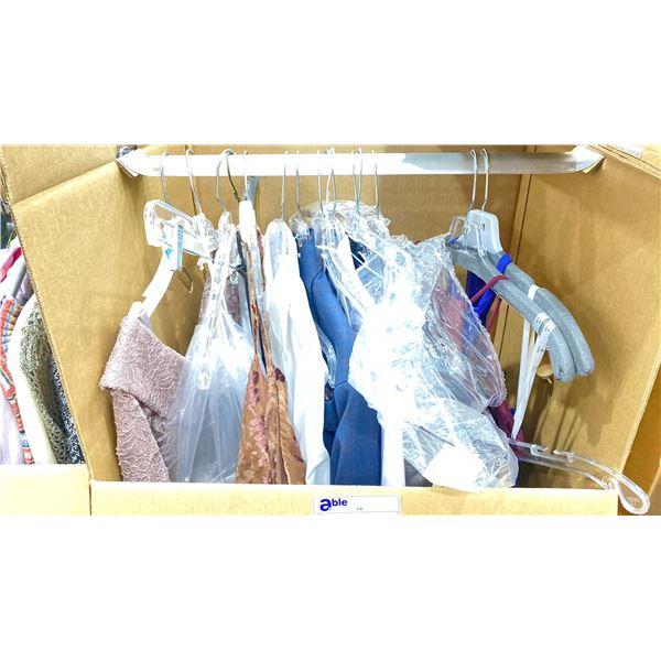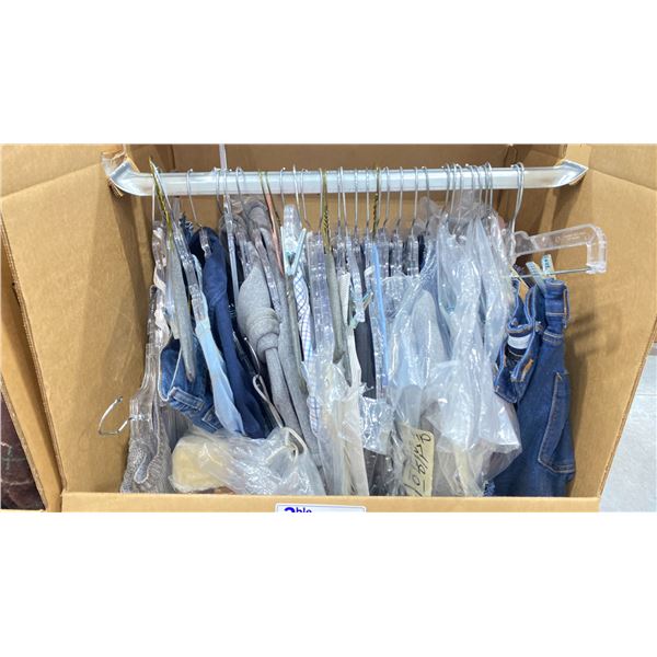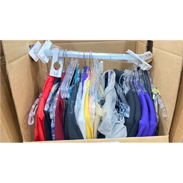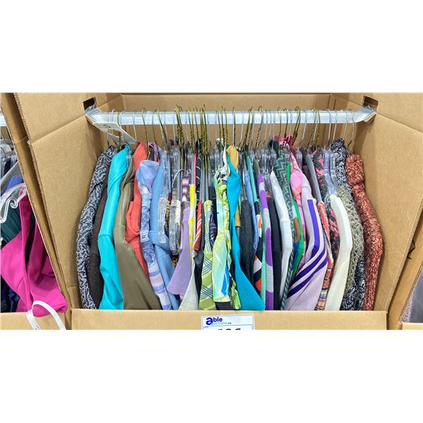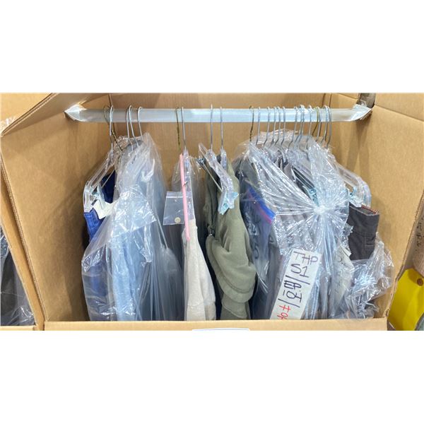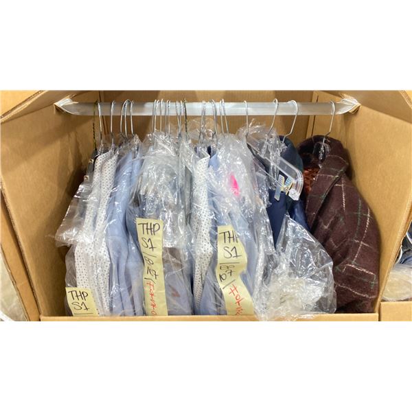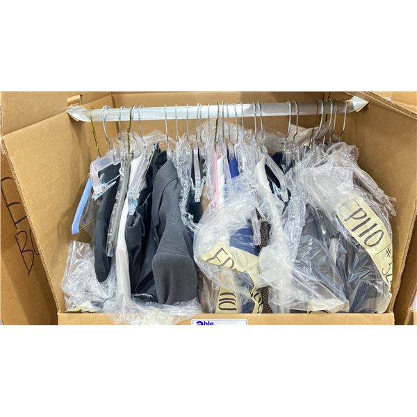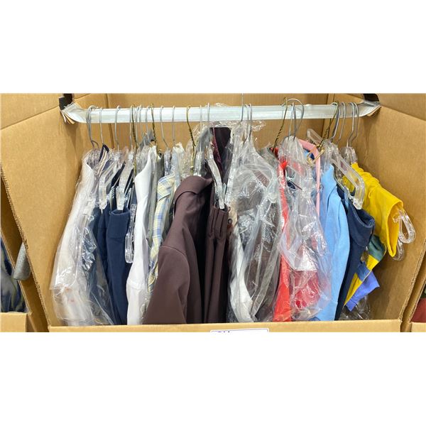 WARDROBE BOX OF ASSORTED CLOTHING (BOX AND ALL CONTENTS MUST BE TAKEN)