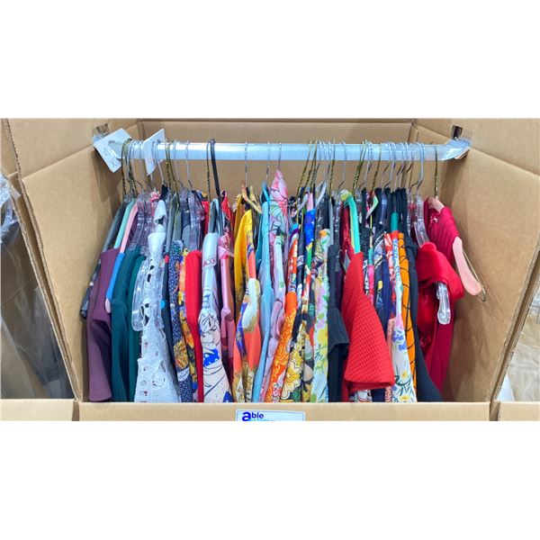 RACK OF ASSORTED WARDROBE CLOTHING (RACK INCLUDED & MUST BE TAKEN)