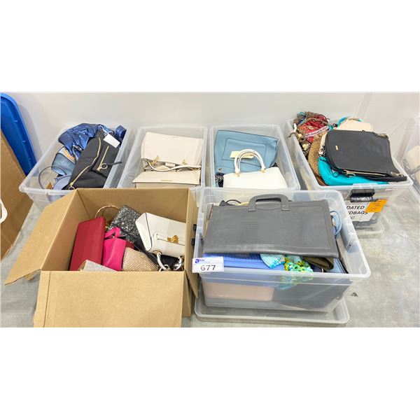 LARGE BOX OF ASSORTED BAGS, BRAS & MORE