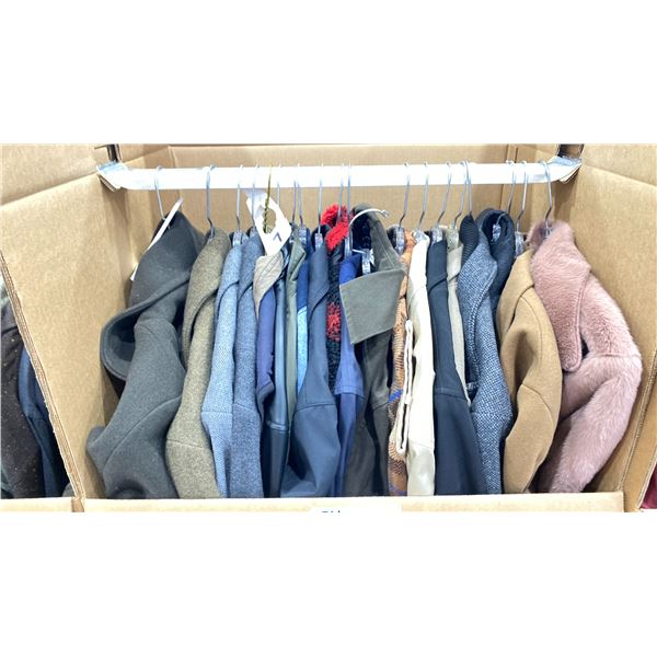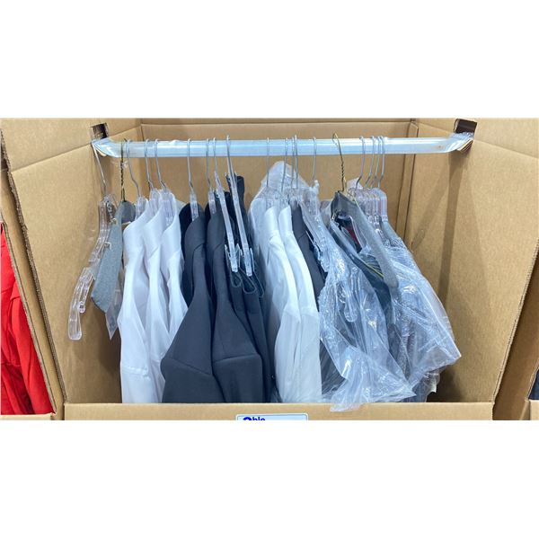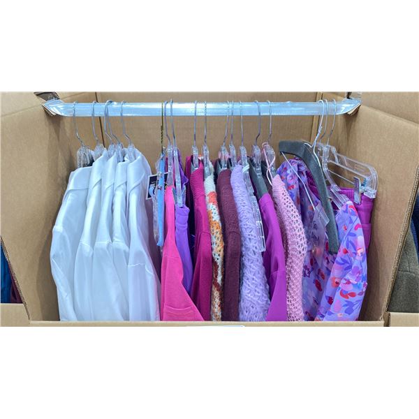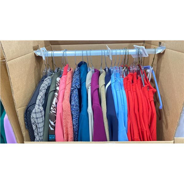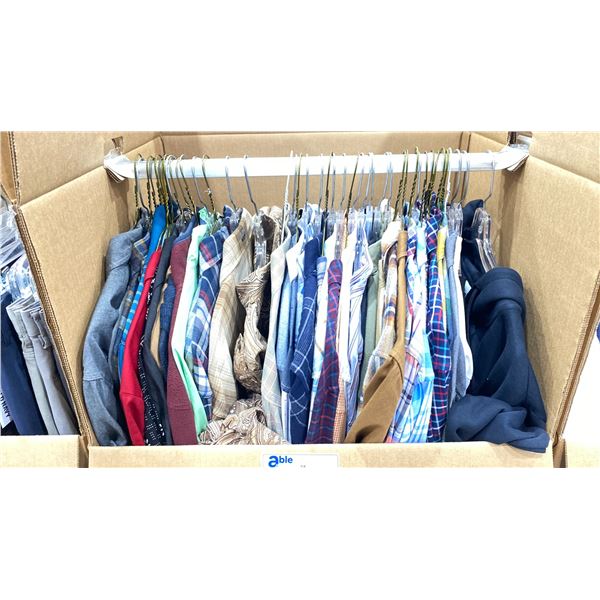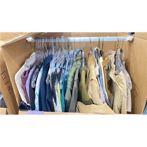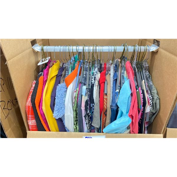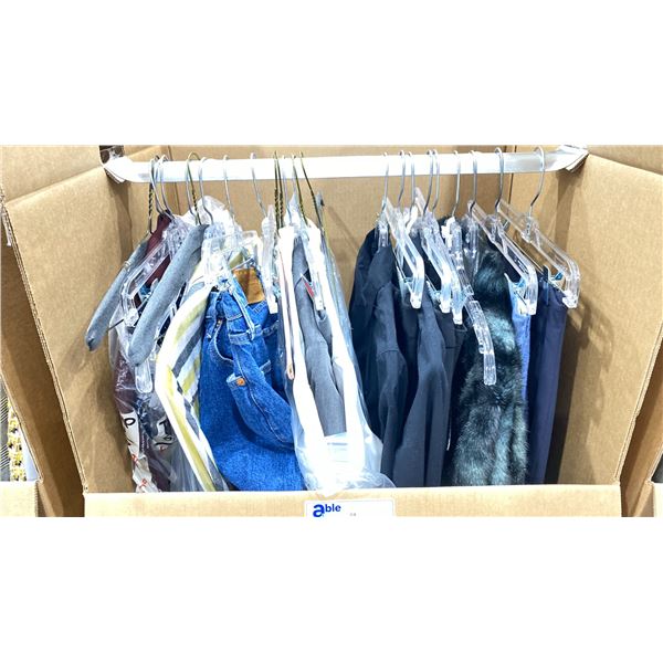 WARDROBE BOX OF ASSORTED CLOTHING (BOX AND ALL CONTENTS MUST BE TAKEN)
