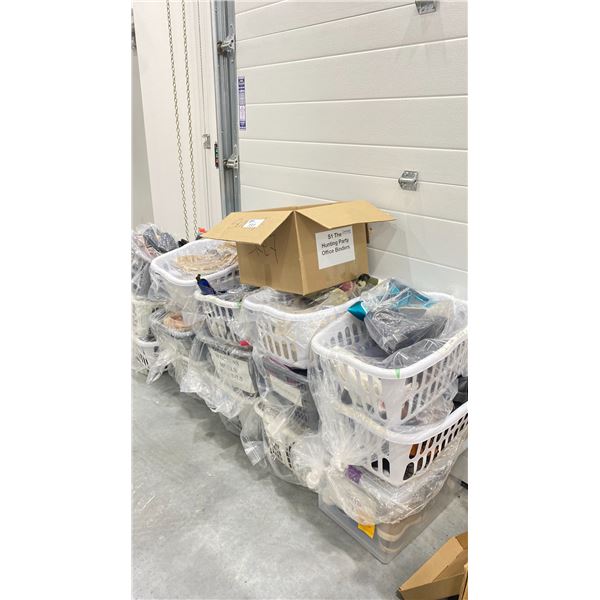 (15) LAUNDRY BASKETS & (1) BOX OF ASSORTED SHOES