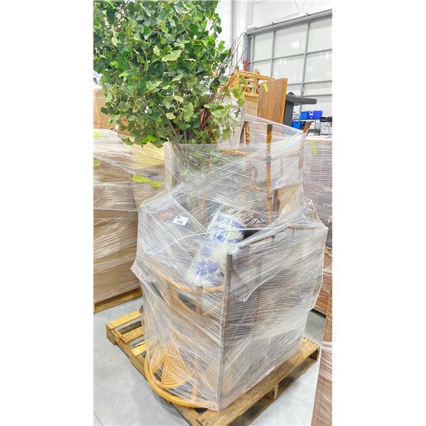 PALLET OF ASSORTED FURNITURE & FAUX PLANTS