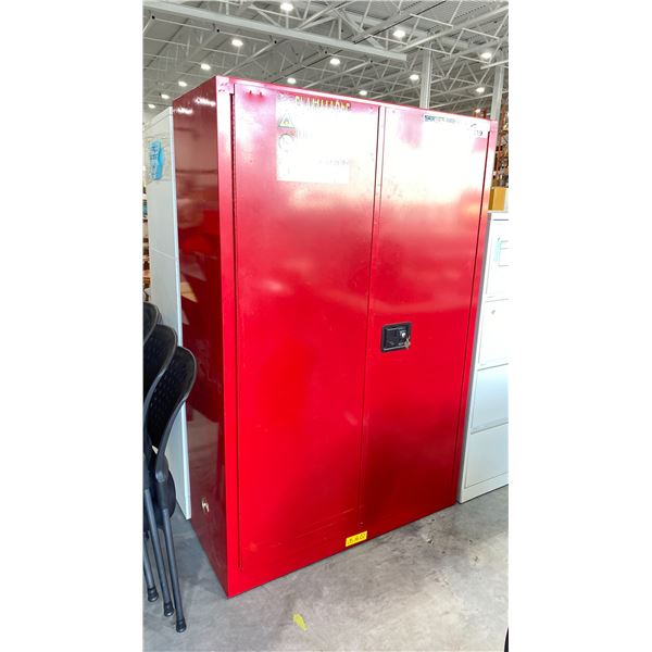 ULINE H-1564S-R FLAMMABLE LIQUID STORAGE CABINET WITH SHELVES & KEY 43" X 18" X 65"H