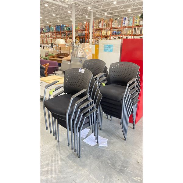 Lot 415 - Grey contemporary office chair & 3 brown stacking client chairs