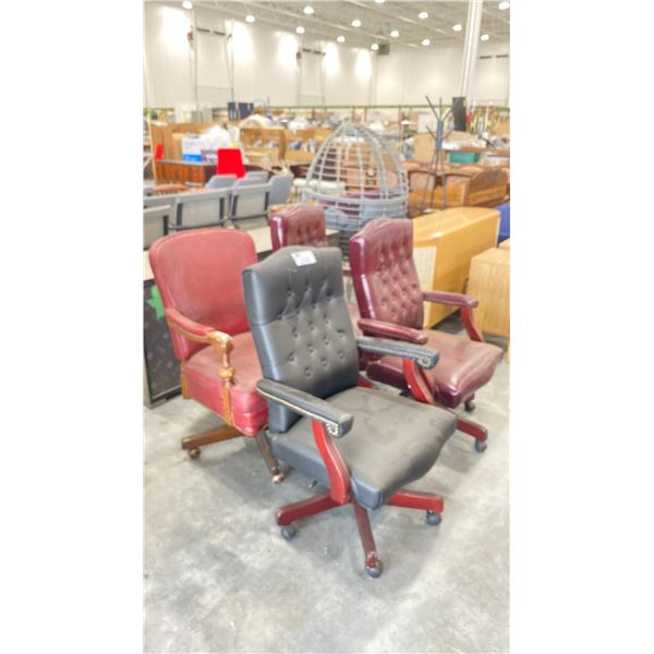 (4) ASSORTED STUFFED LEATHER ROLLING OFFICE CHAIRS
