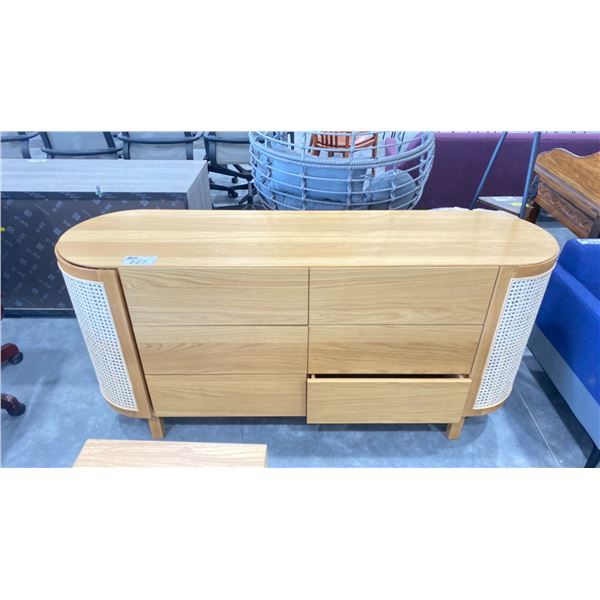 6 PUSH OPEN DRAWER 2 CANED DOOR DRESSER 68" X 18" X 33"H