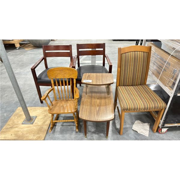 4 ASSORTED CHAIRS & SMALL CONSOLE TABLE
