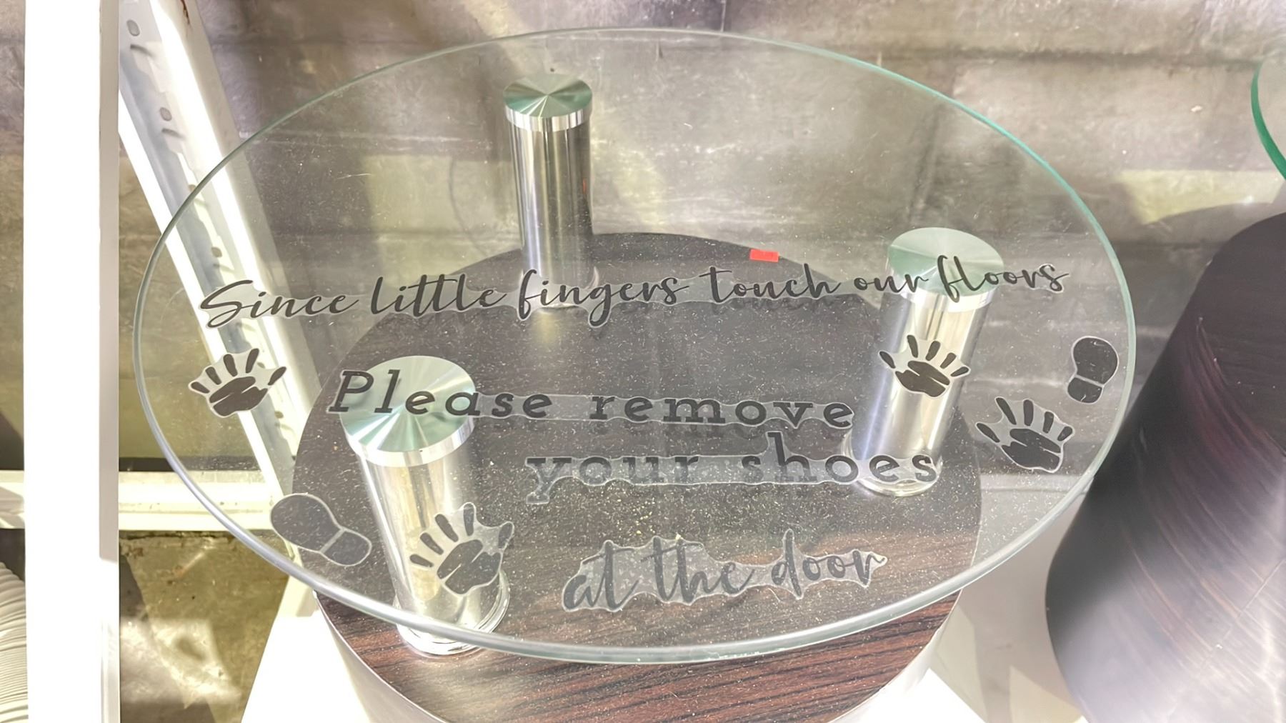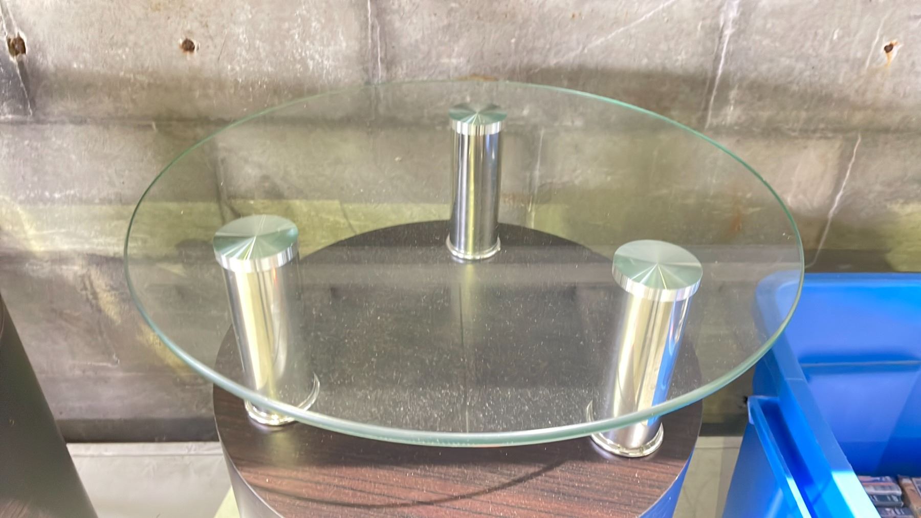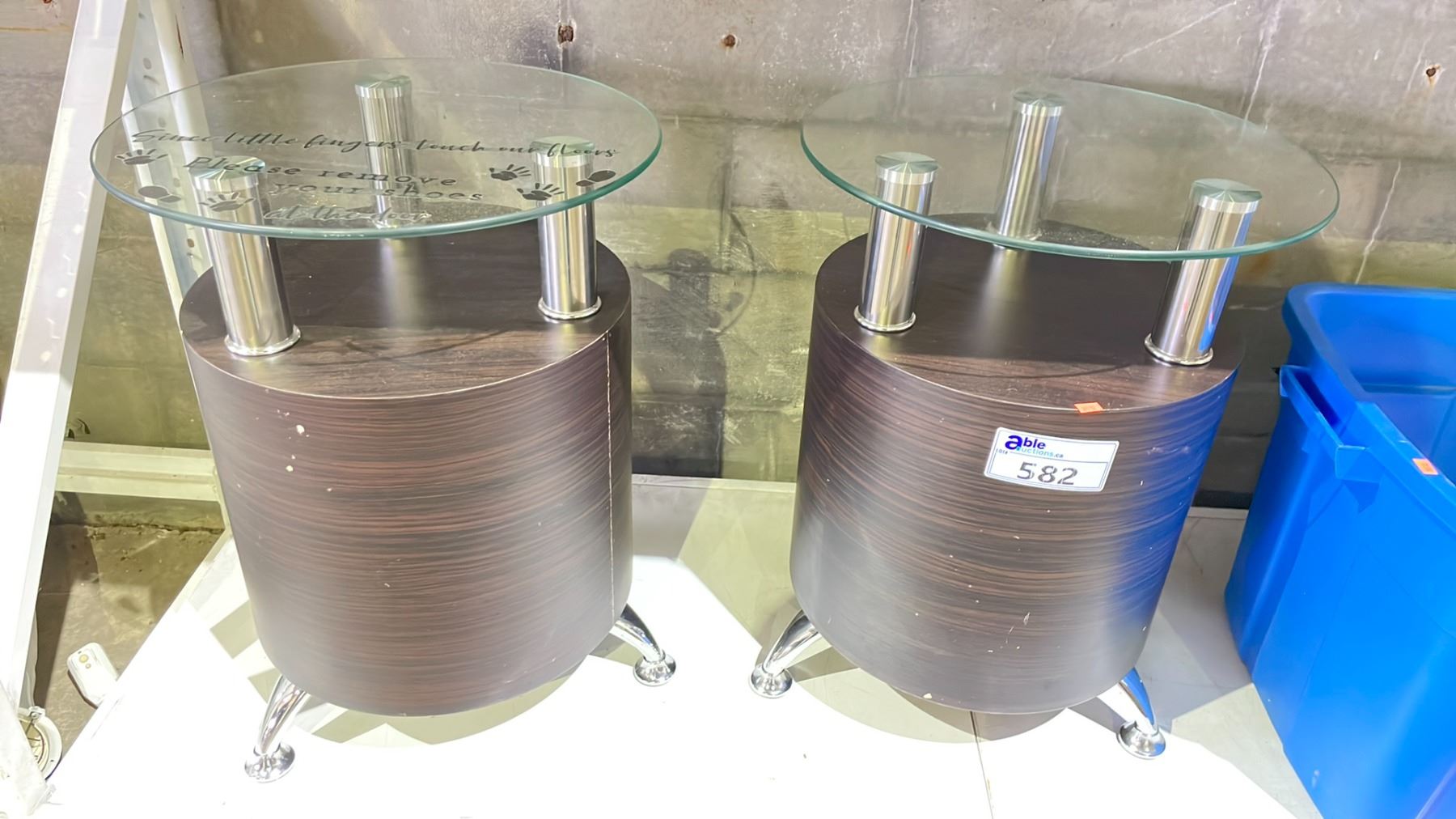 SET OF 2 MODERN WOODEN ROUND SIDE TABLES WITH GLASS TOP
