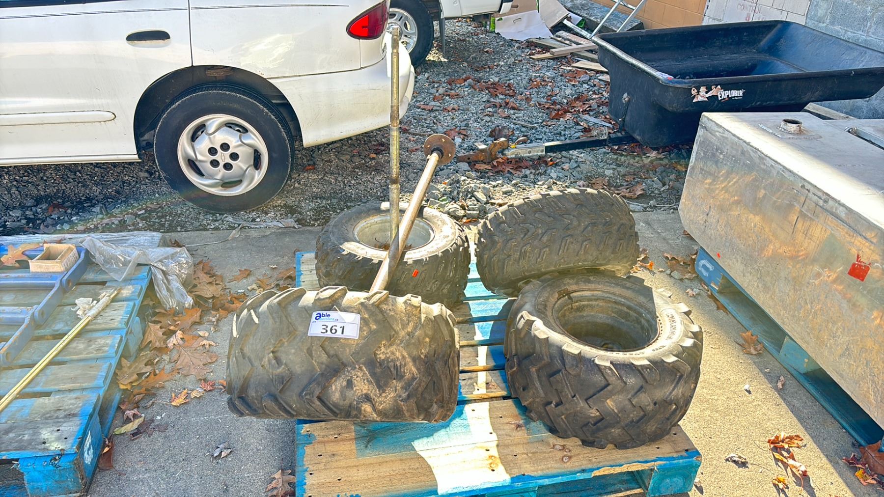 SET OF 2 WANDA AT22 X 11.00-10 ATX78 TIRES ON RIMS & SET OF 2 KARET 22X 10-10 TIRES ON RIMS WITH 2 AXELS