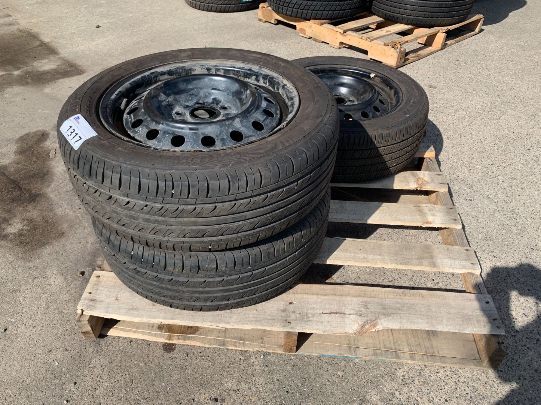 SET OF 2 WINDA WP16 205/55R16 TIRES MOUNTED ON 5 BOLT METAL RIMS & GOODYEAR EAGLE RS-A P205/55R16 TIRE MOUNTED ON 5 BOLT METAL RIM