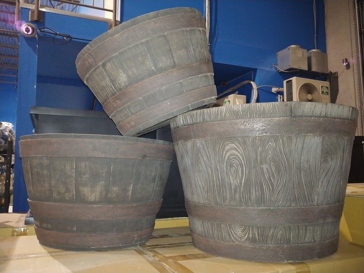 SET OF 3 BARREL THEMED PLANTERS
