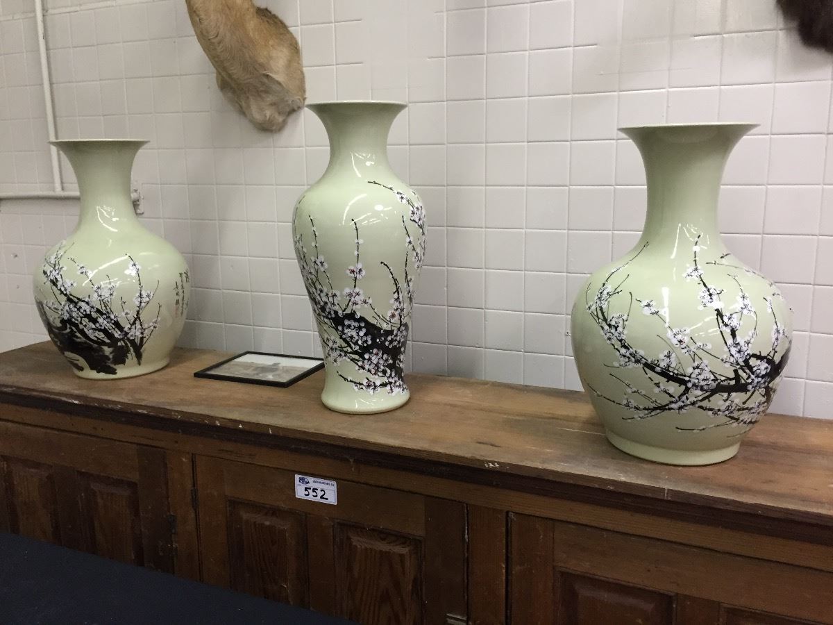 SET OF 3 CELADON GLAZED EXPORT VASES, 23'' AND 25'' H