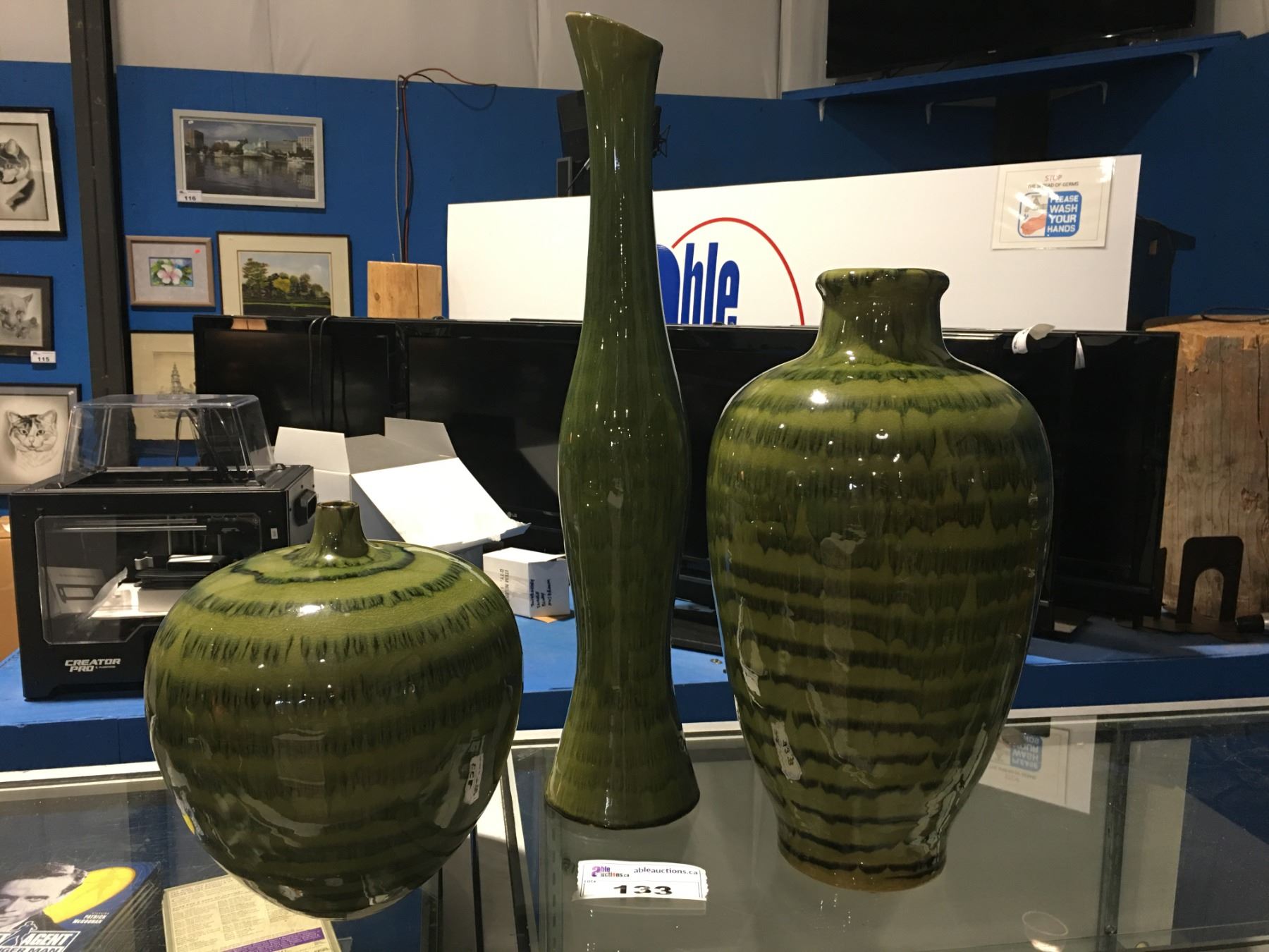 SET OF 3 LARGE GREEN VASES (APPROX 28", 20" & 13")