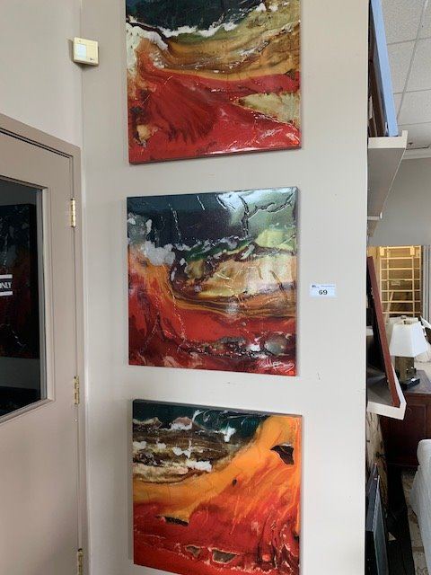 SET OF 3 PAINTED CANVAS MODERN ARTWORK
