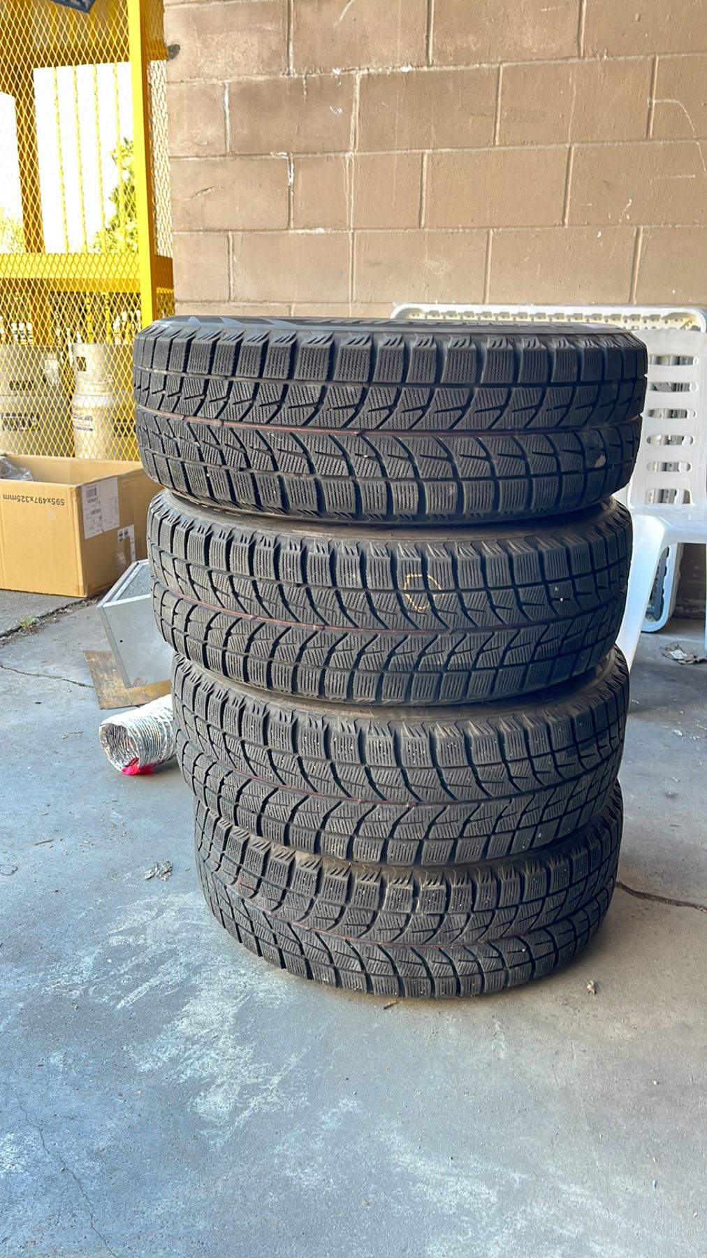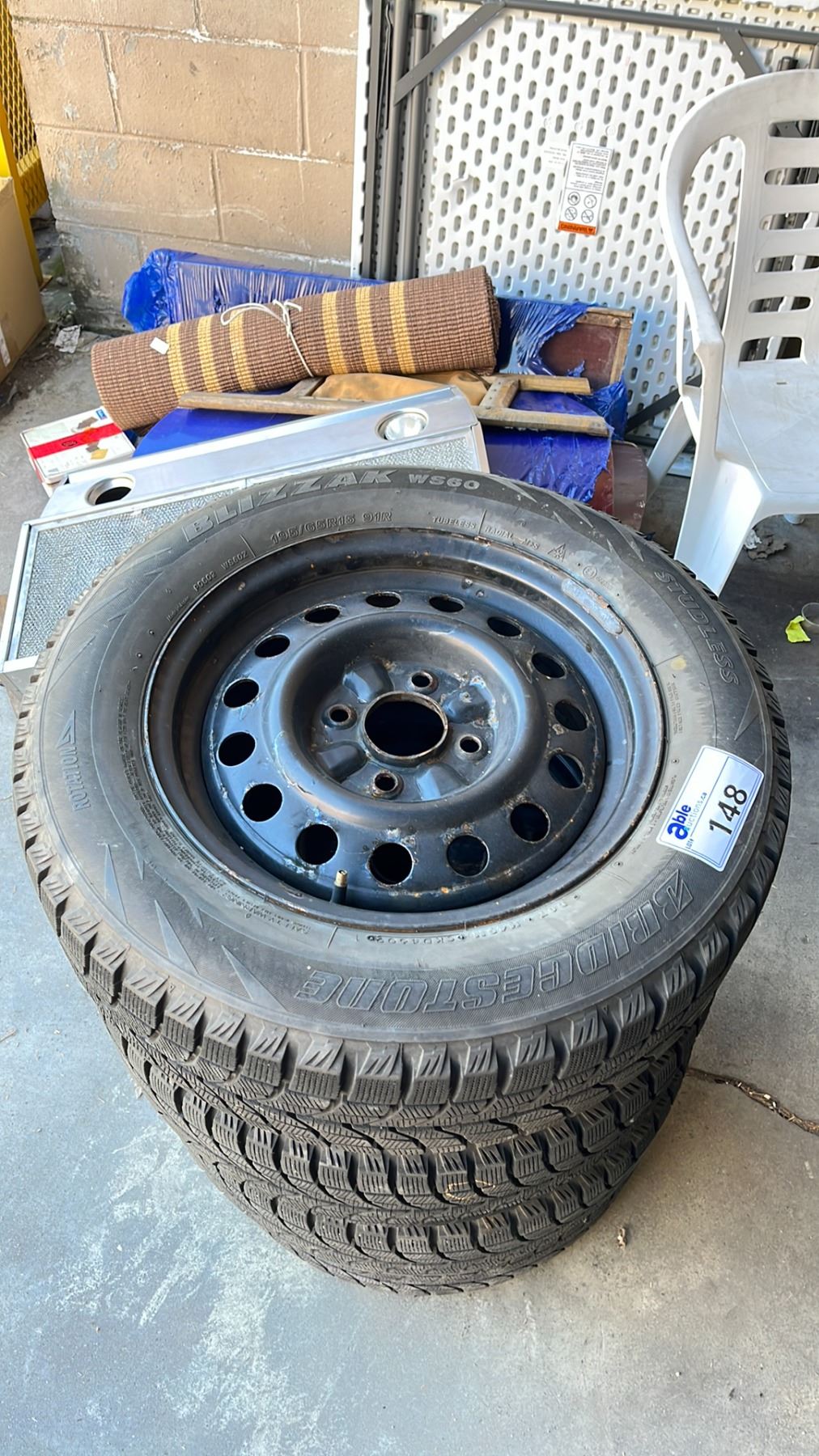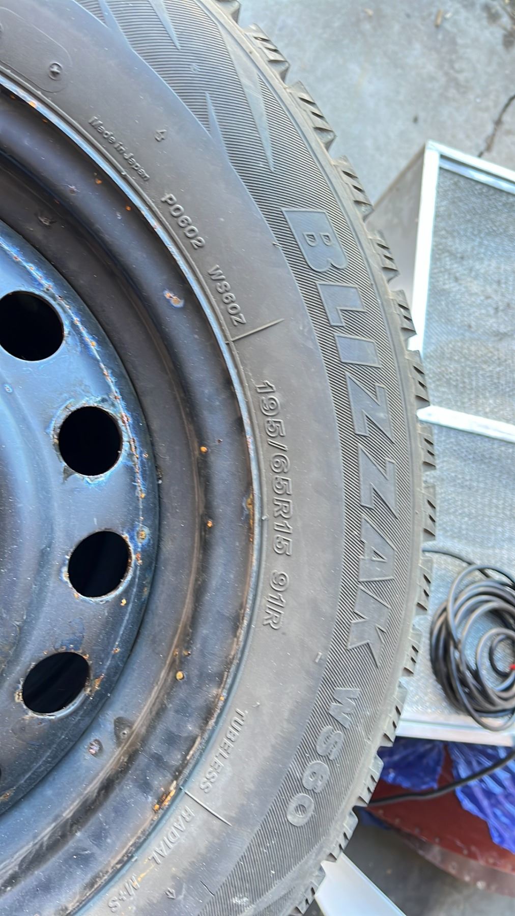 SET OF 4 BRIDGESTONE BLIZZAK WS60 195/65R15 91R TIRES ON 4 BOLT METAL RIMS