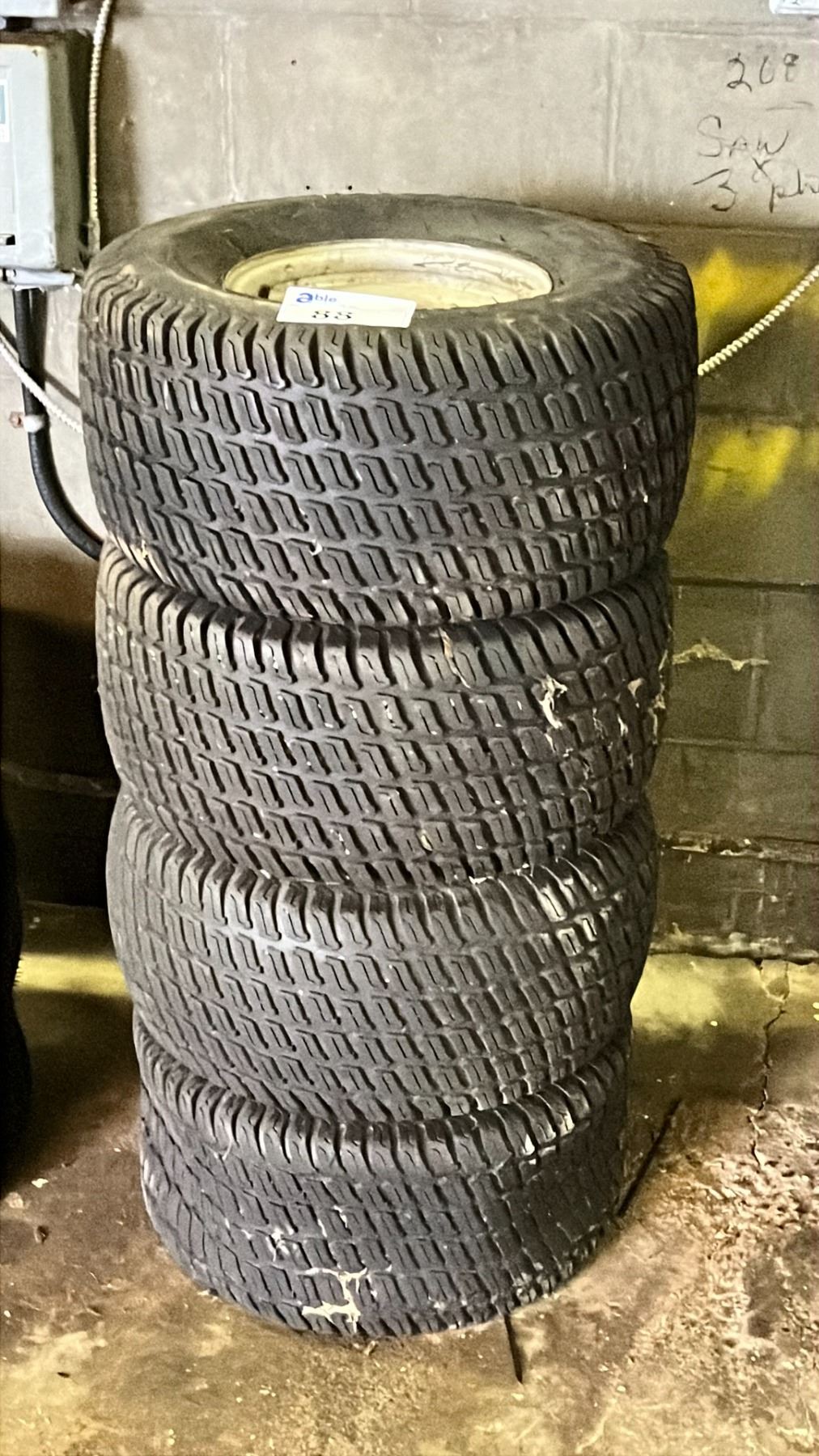 SET OF 4 CARLISLE TURF MASTYER 22X10.00-10 NHS TIRES ON 5 BOLT METAL RIMS