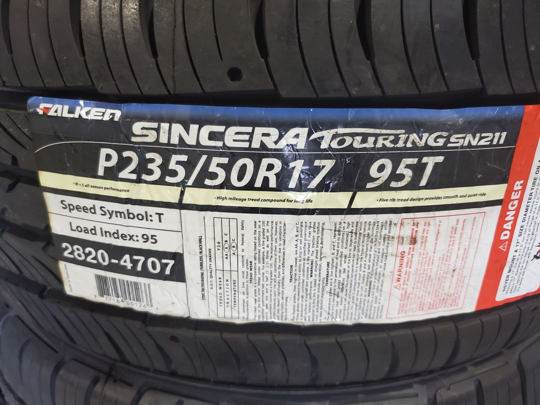 SET OF 4 FALKEN SINCERA TOURING SN211 P235/50 R 17 95T M+S ALL SEASON PERFORMANCE VEHICLE TIRES *$5 PER TIRE ECO-LEVY WILL BE CHARGED*