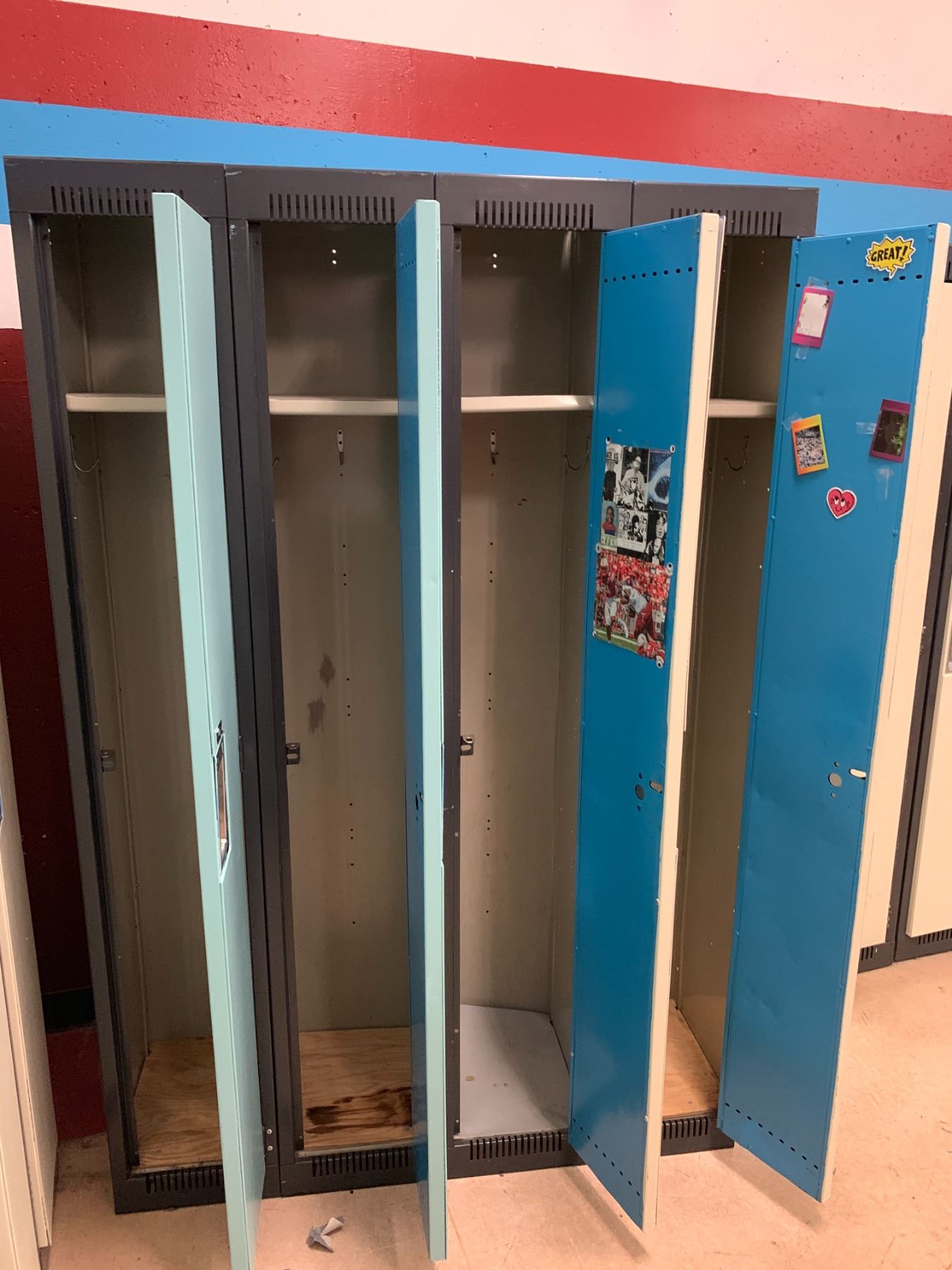 SET OF 4 FULL SIZE METAL LOCKERS APPROX 72"X48"X15"