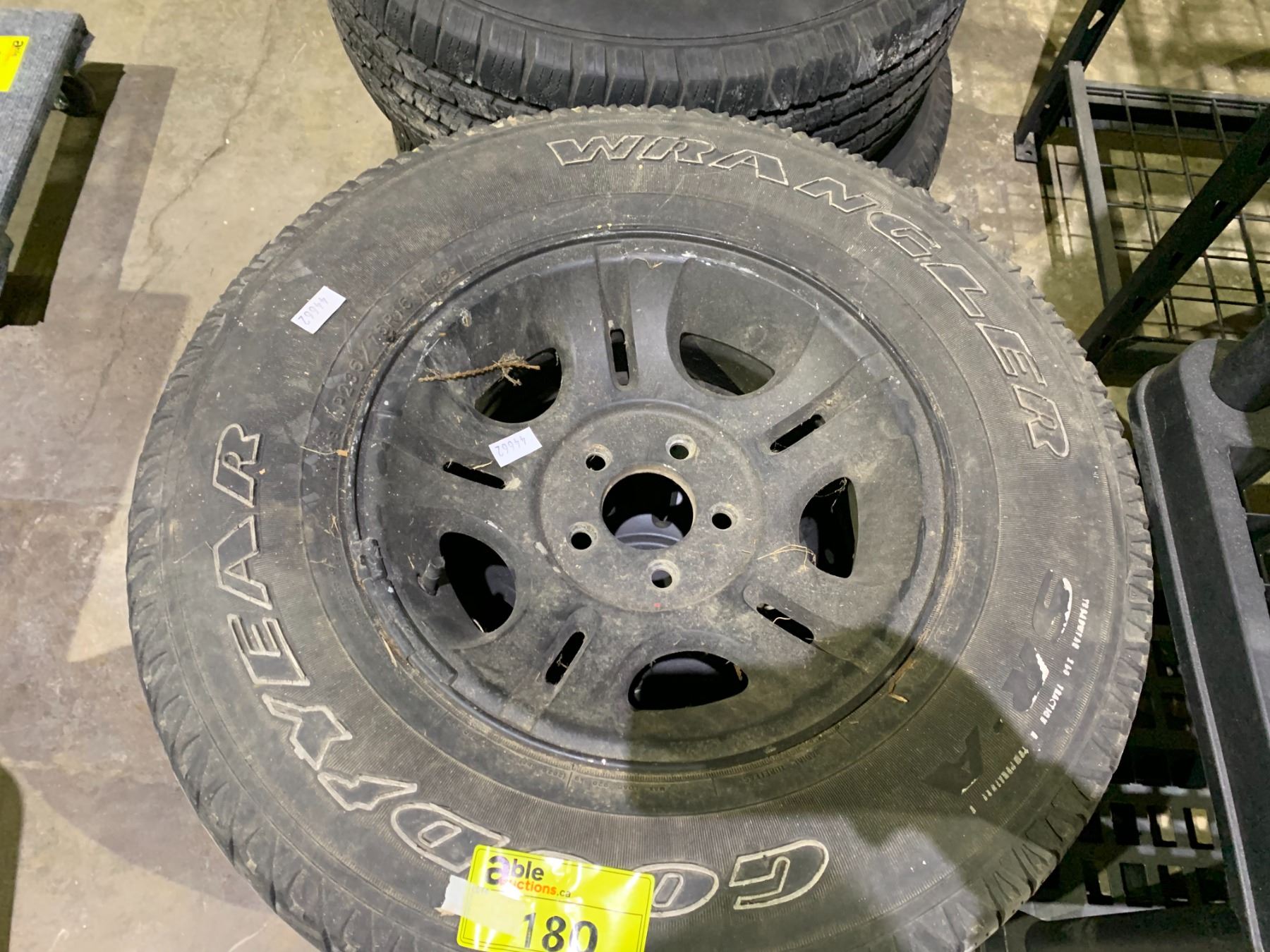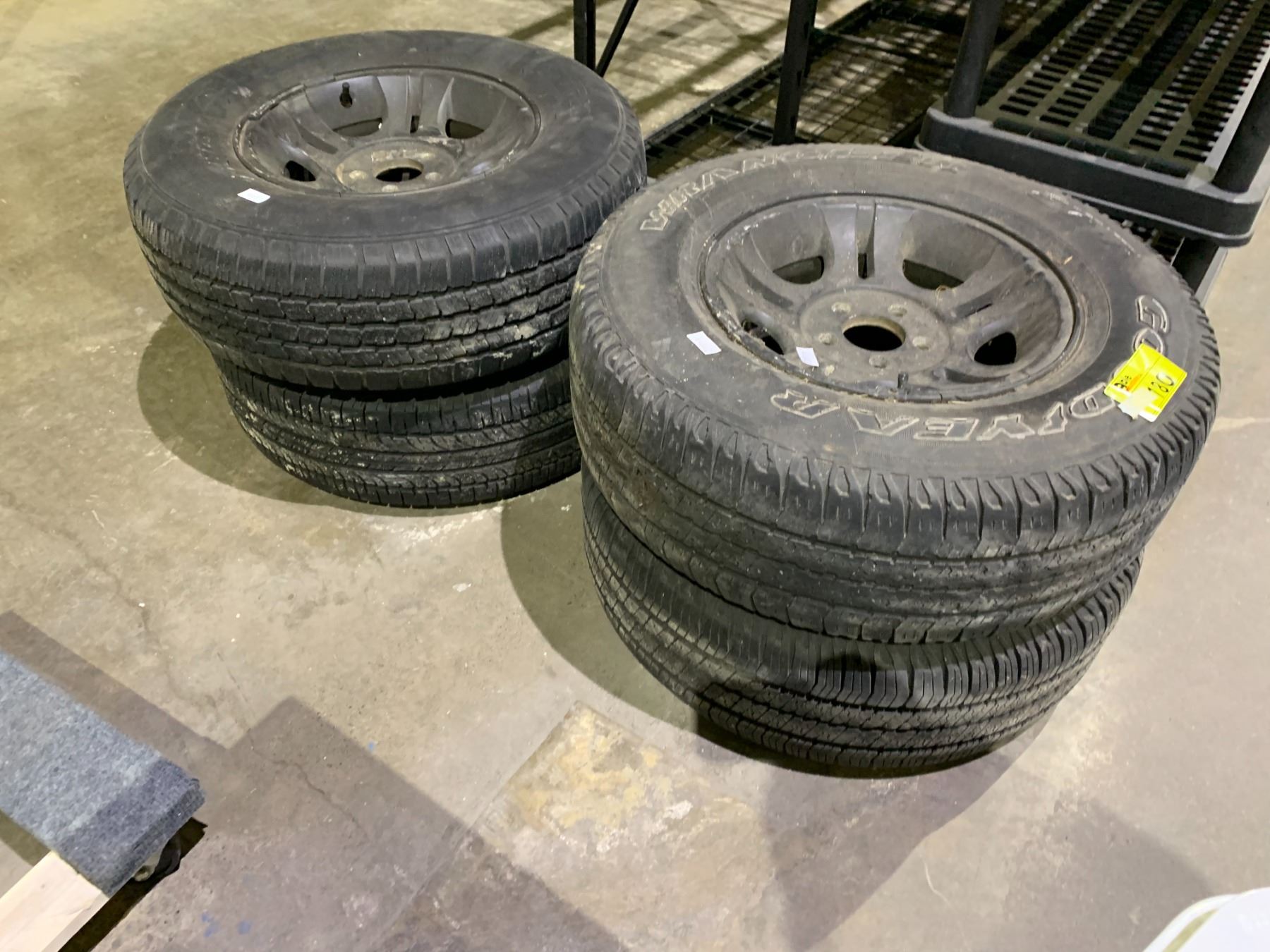 SET OF 4 P235/75 R16 TIRES AND RIMS (MISMATCHED BRANDS)