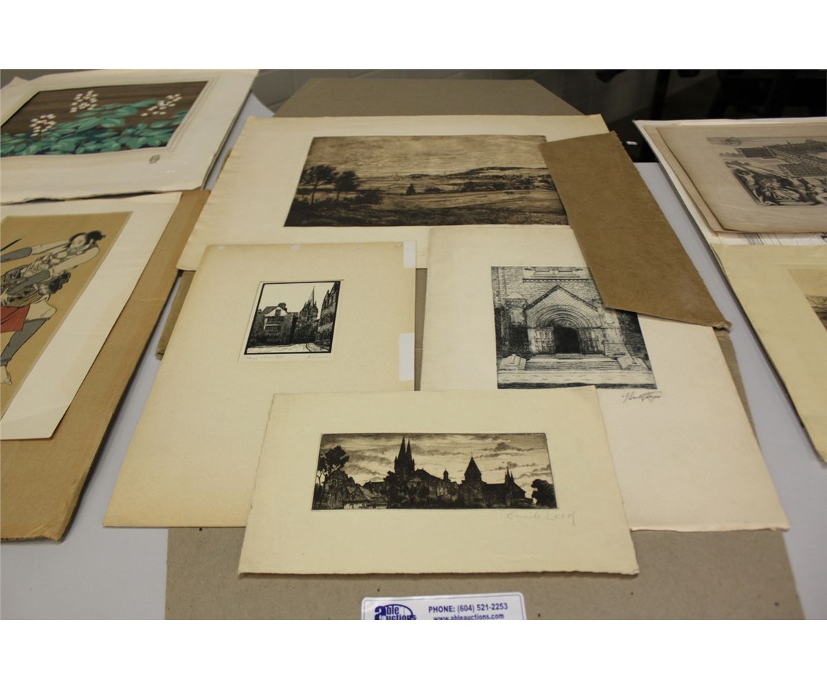 SET OF 4 SIGNED ETCHINGS EMILE LEROY,W RUSSELL,