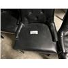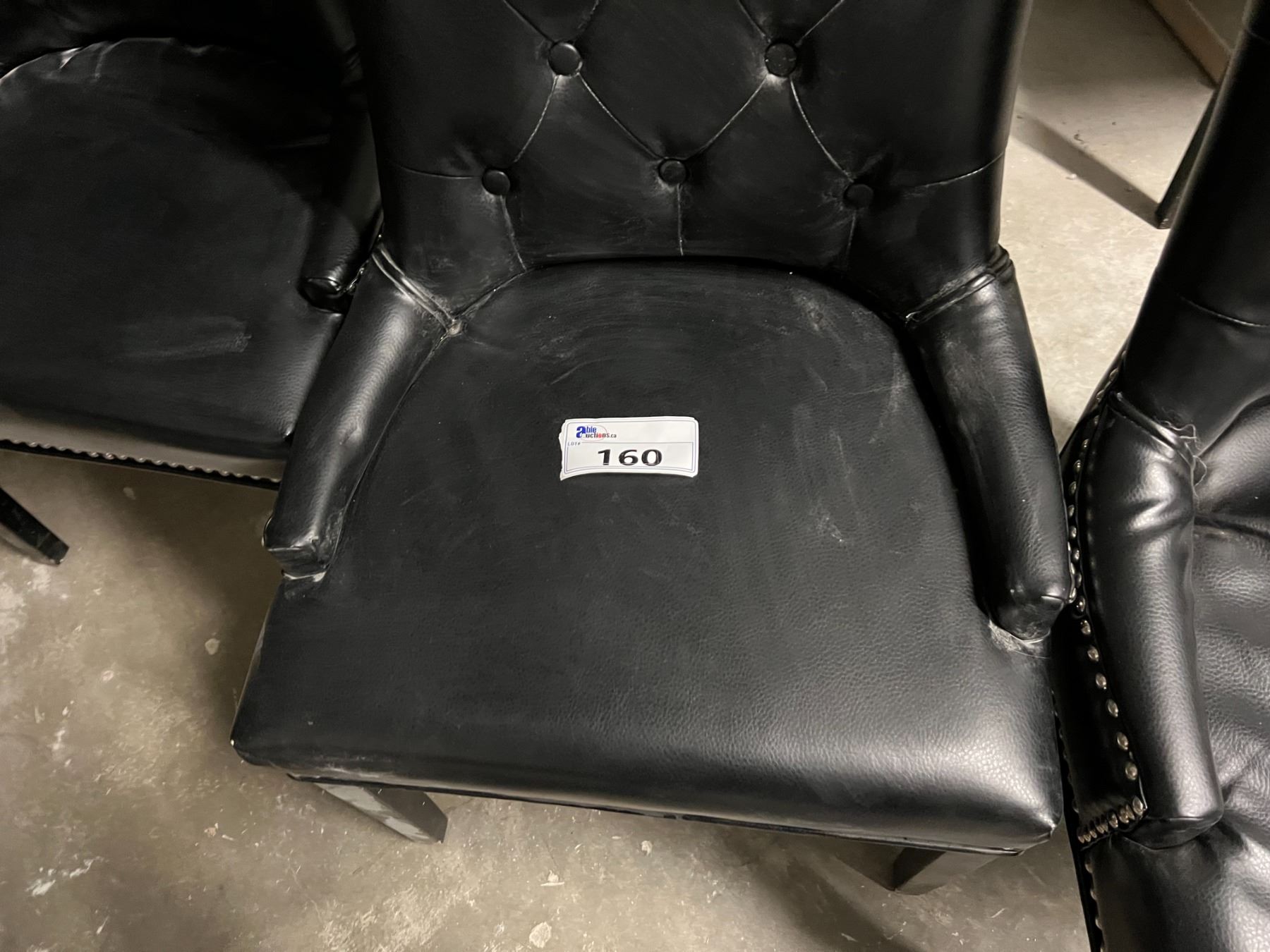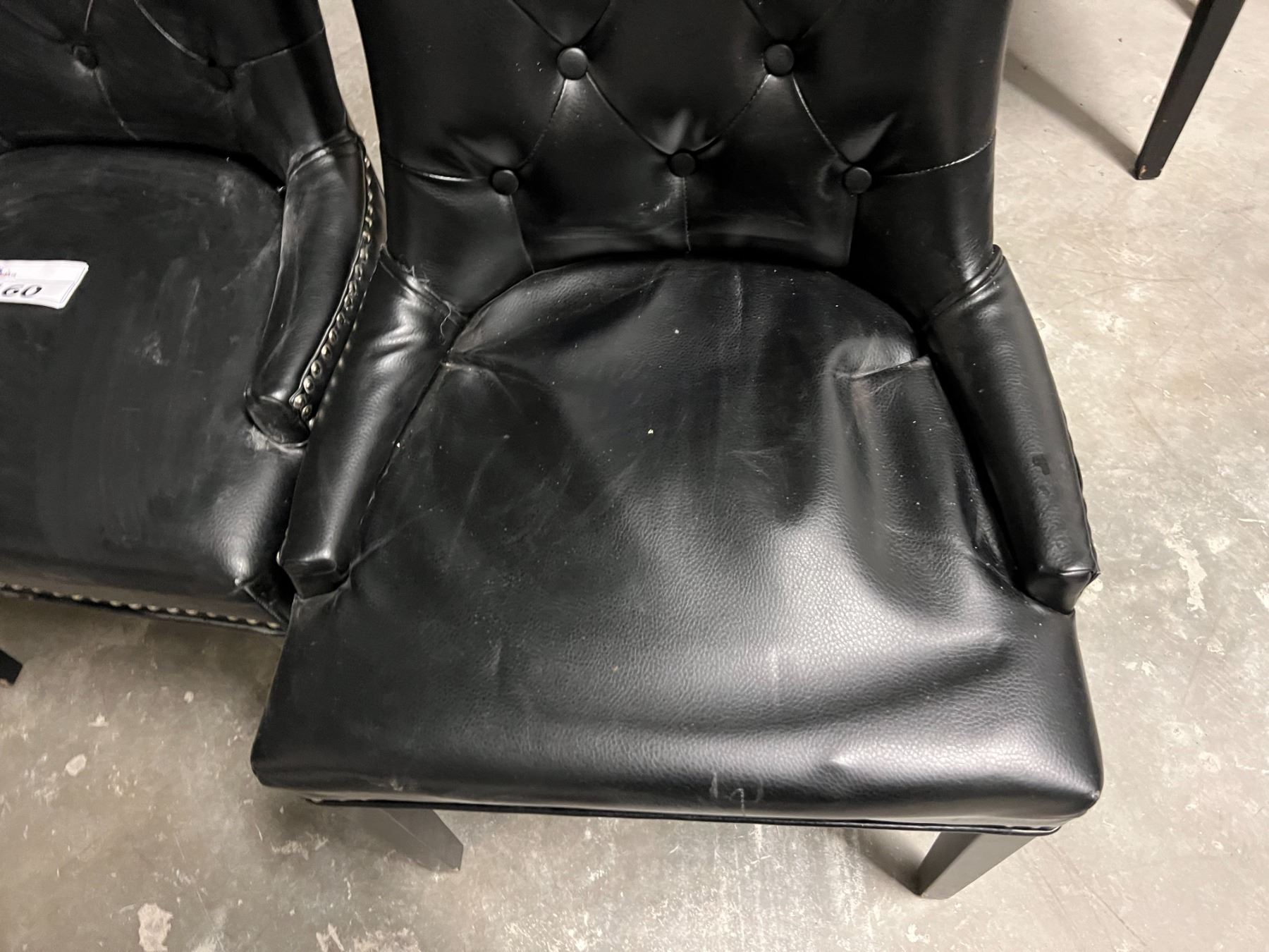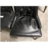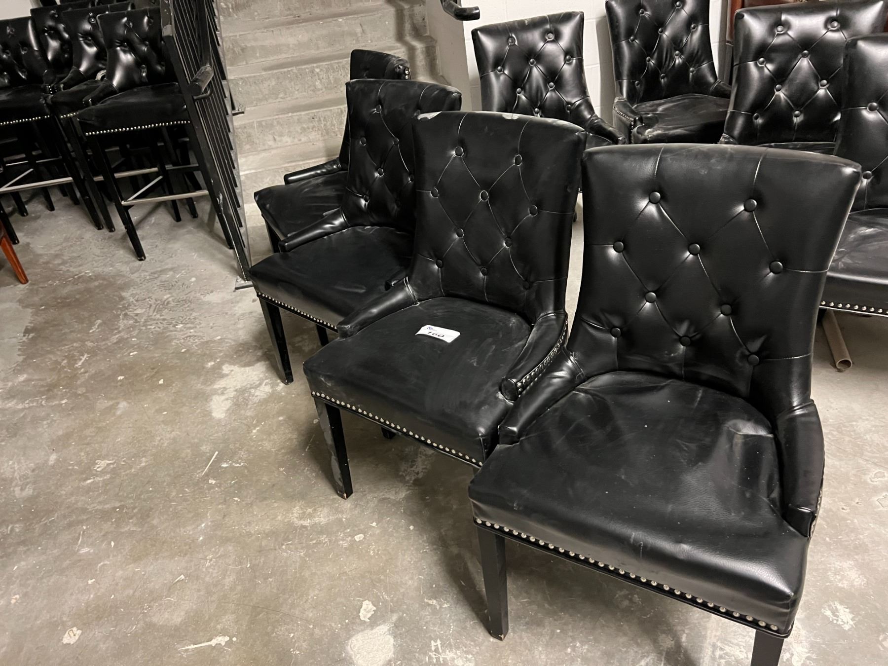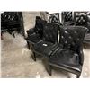SET OF 4 STANDARD HEIGHT BLACK UPHOLSTERED CHAIRS. CONDITION AS SHOWN
