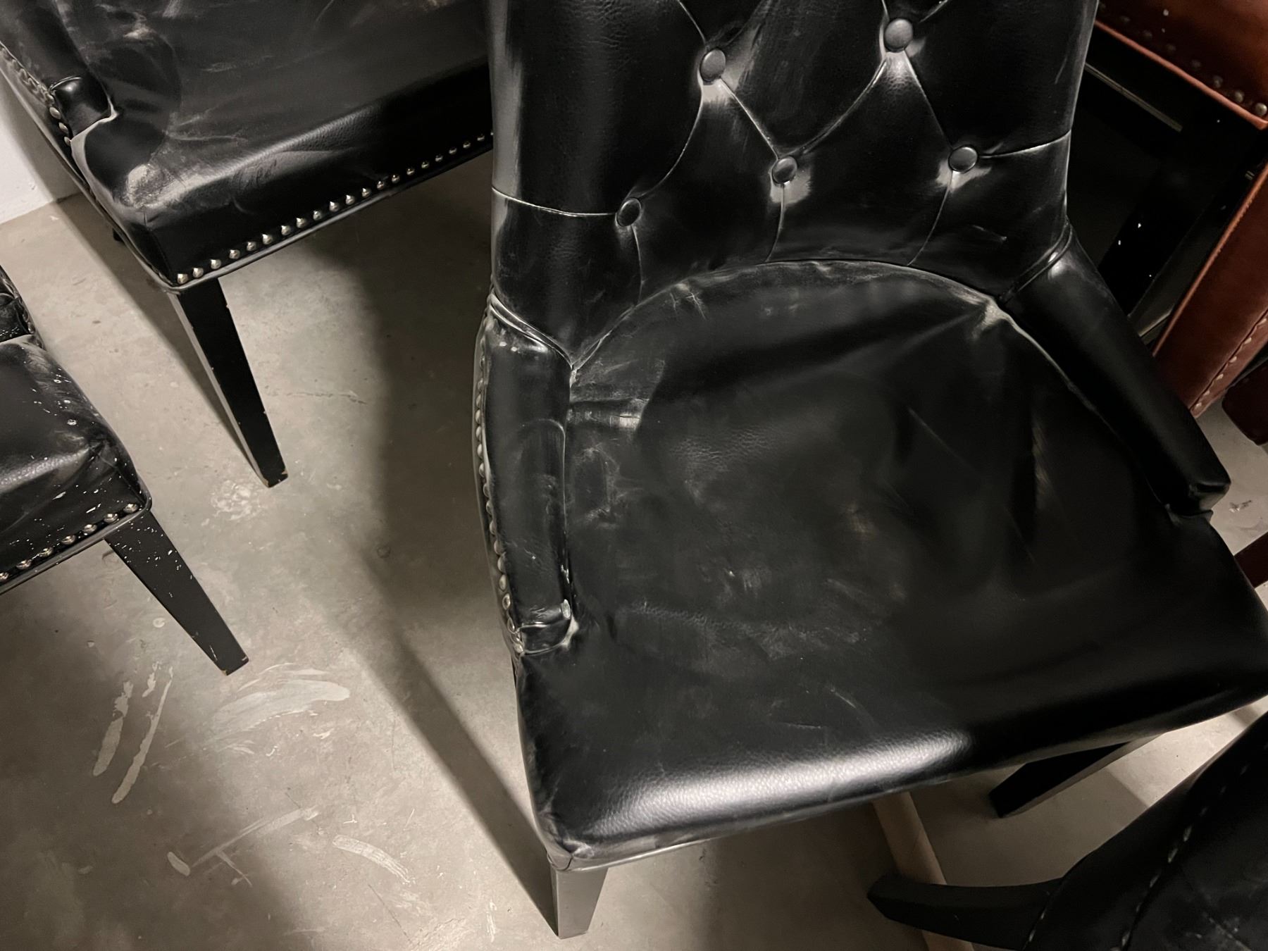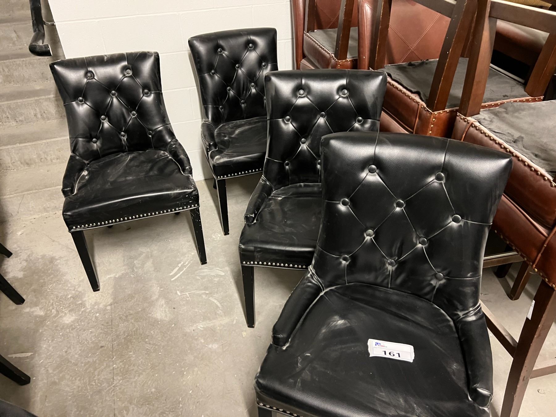 SET OF 4 STANDARD HEIGHT BLACK UPHOLSTERED CHAIRS. CONDITION AS SHOWN