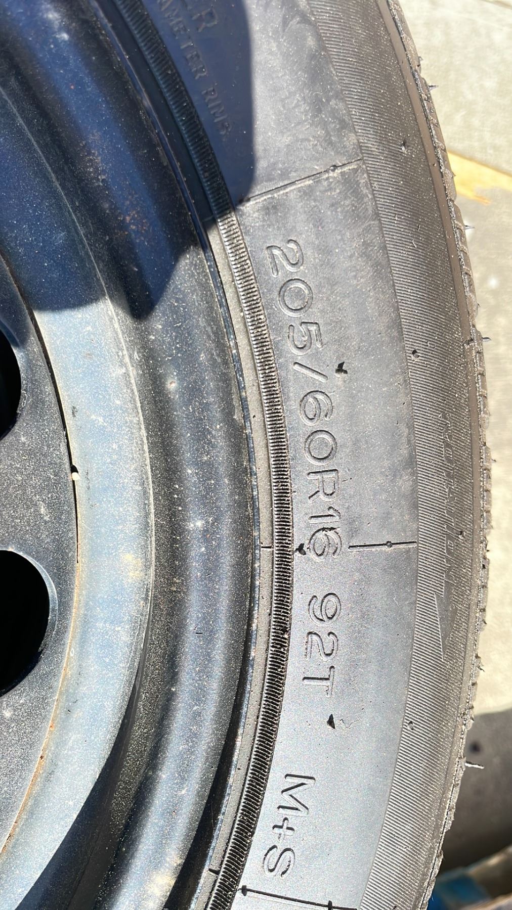 SET OF 4 UNIROYAL TIGER PAW ICE AND SNOW3 205/60R16 92T TIRES ON FOUR BOLT METAL RIMS