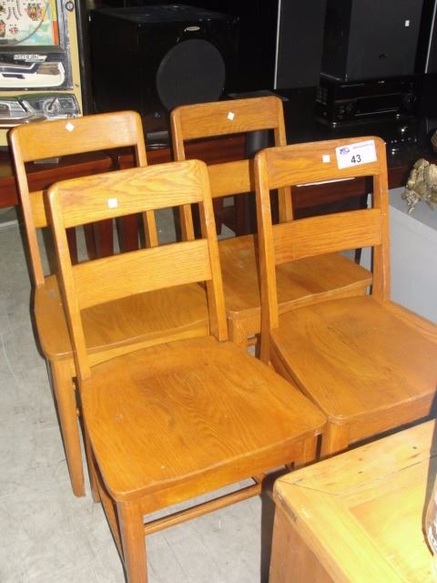 SET OF 4 VINTAGE SOLID OAK OFFICE CHAIRS