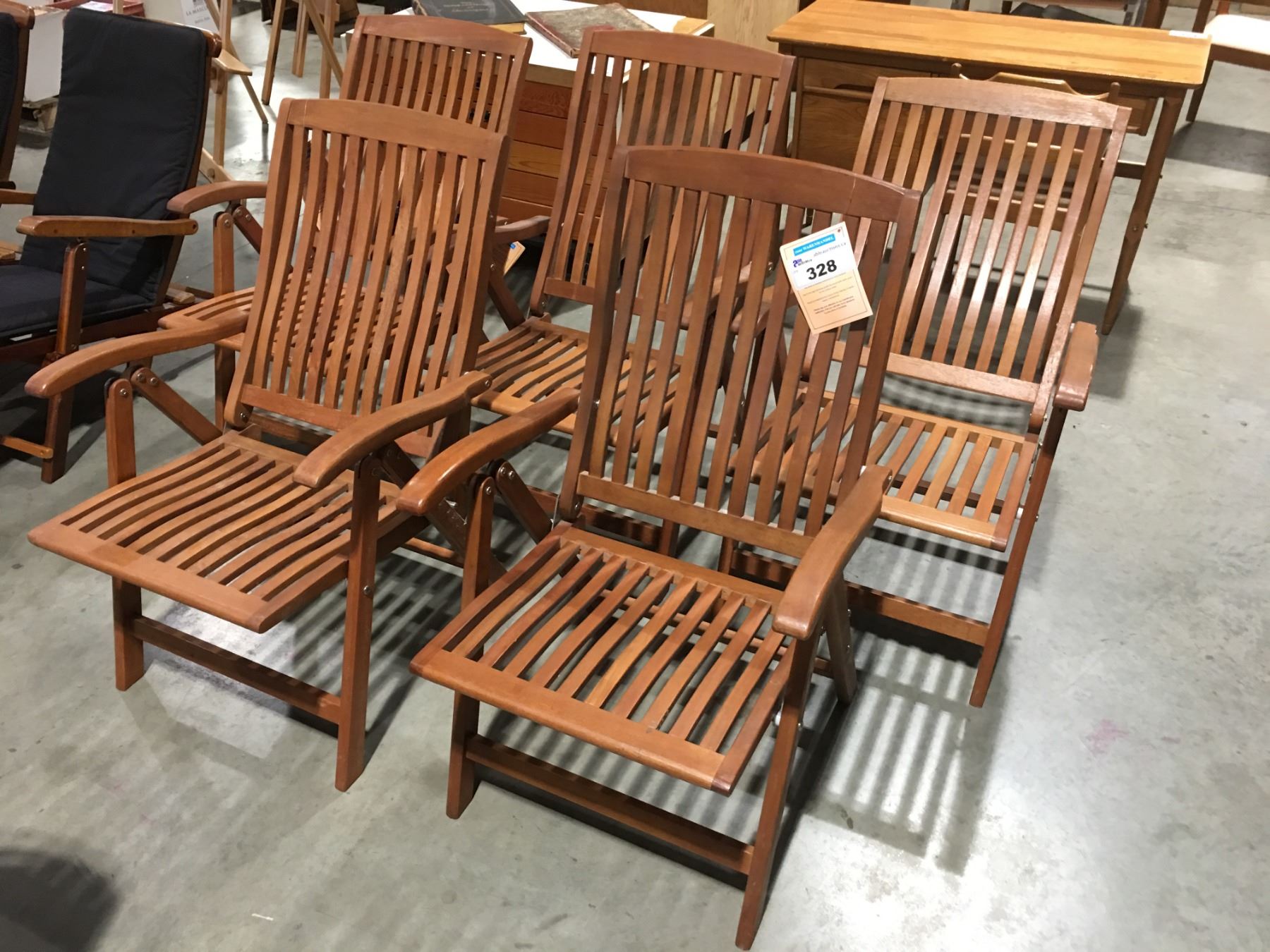 SET OF 5 RENZ WARENHANDEL TEAK DECK CHAIRS
