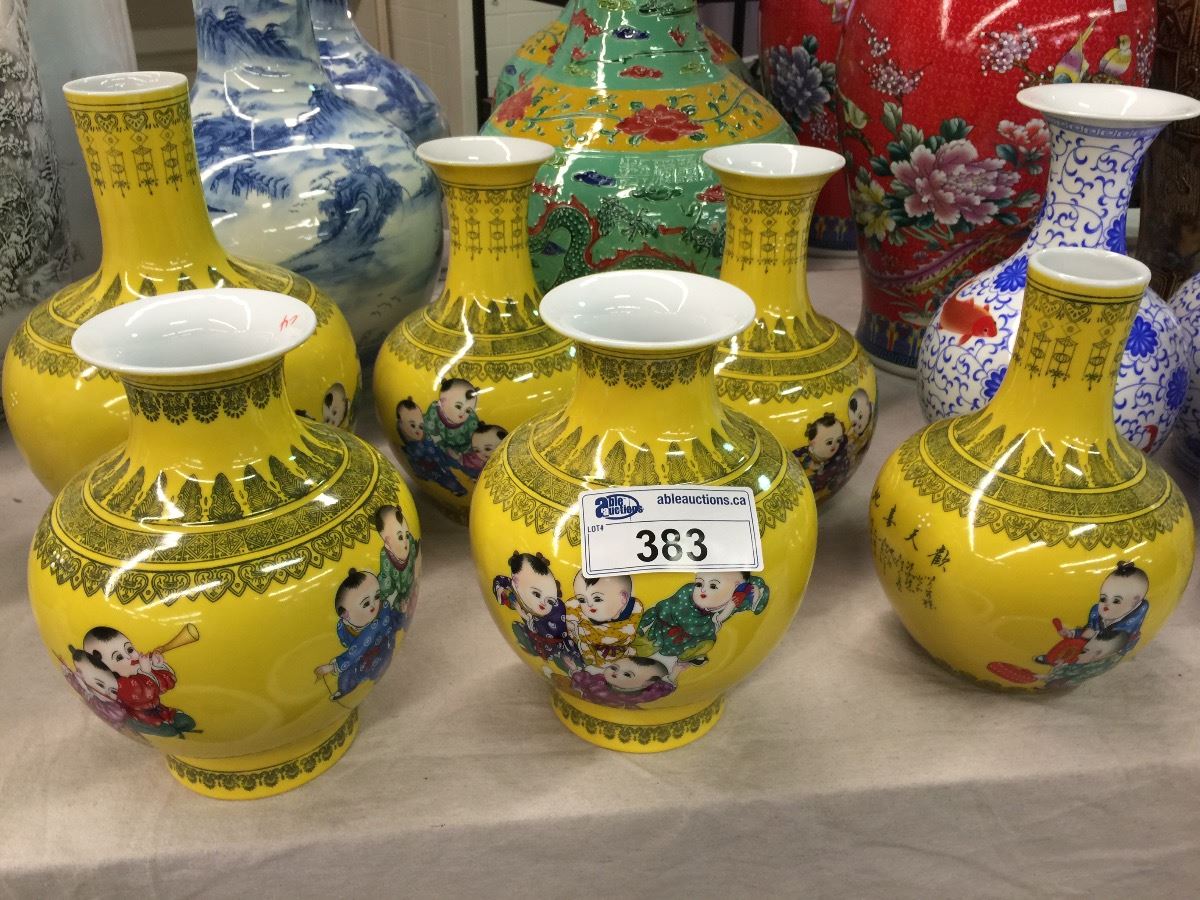 SET OF 6 CHINESE REPUBLIC STYLE YELLOW GLAZED DECORATED VASES