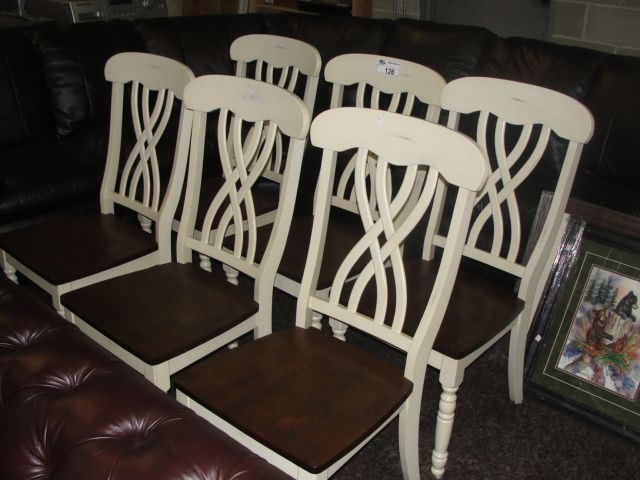 SET OF 6 CREME AND NATURAL DINING ROOM SIDE CHAIRS